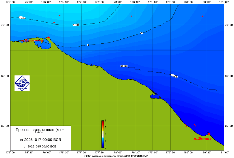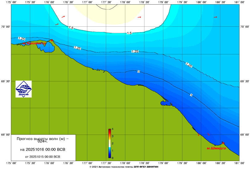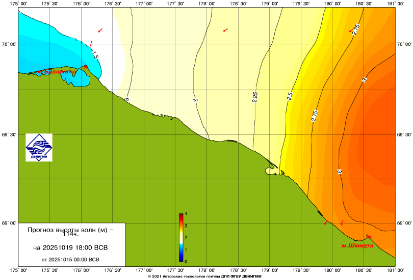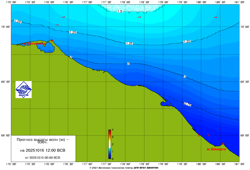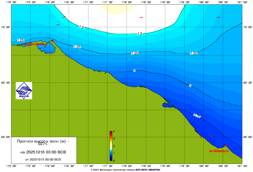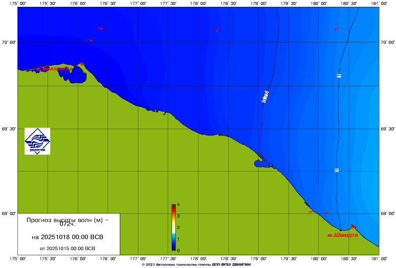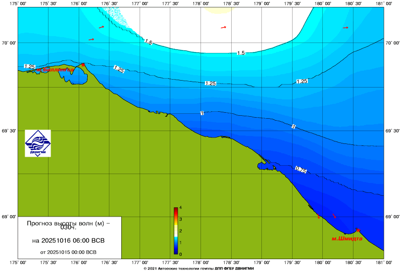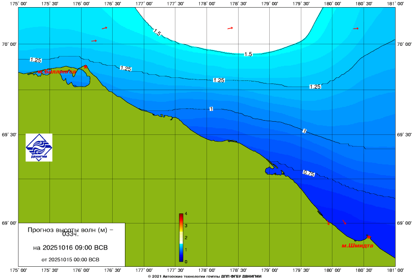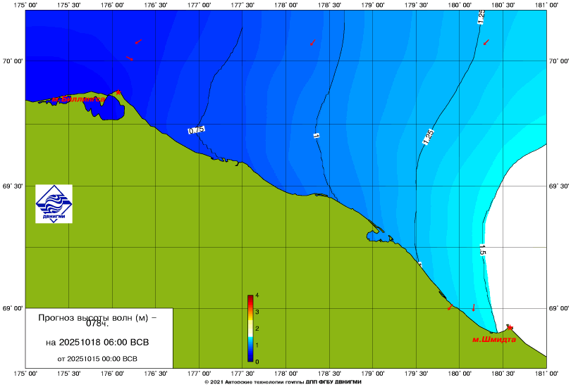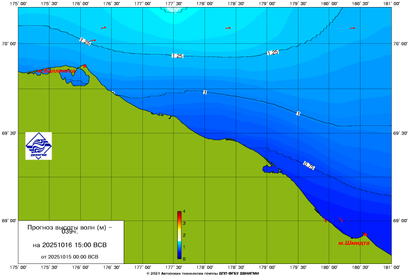 Прогноз на основе численной модели WW III является результатом научных исследований, проводящихся в ФГБУ "ДВНИГМИ".