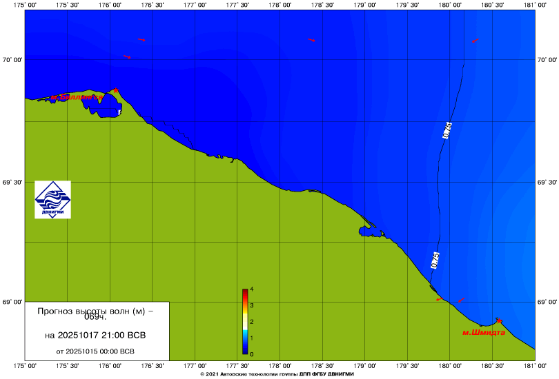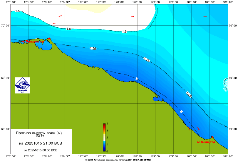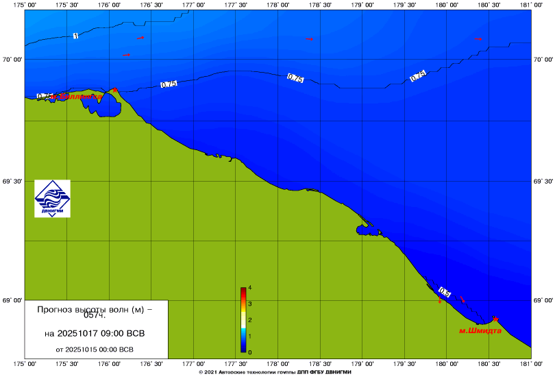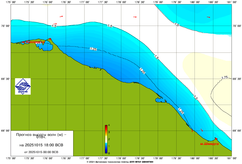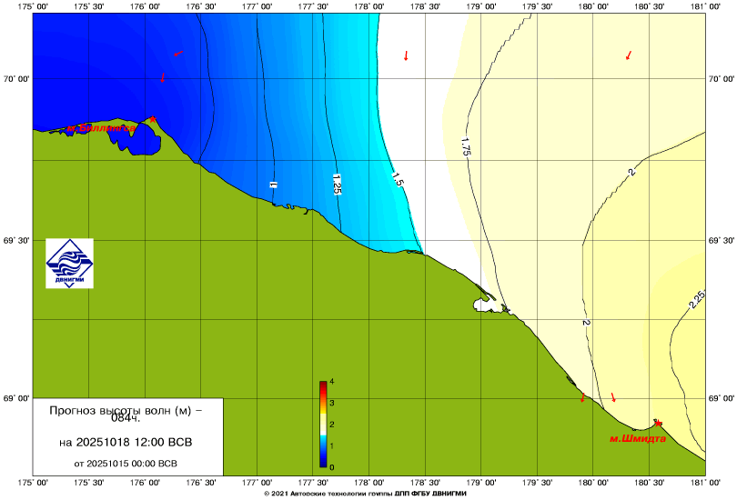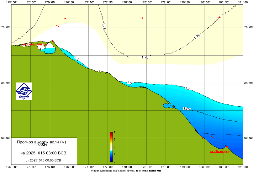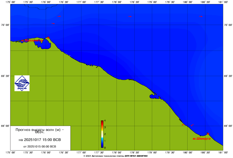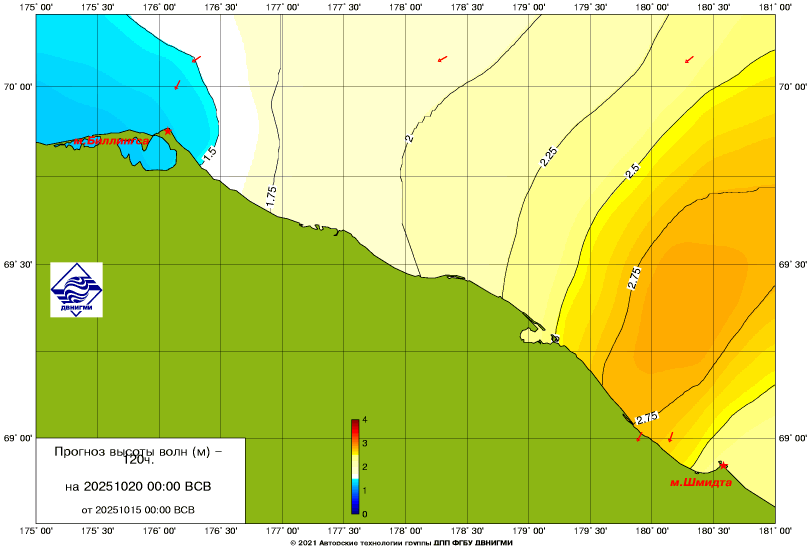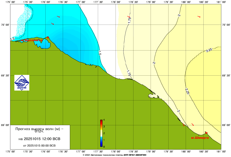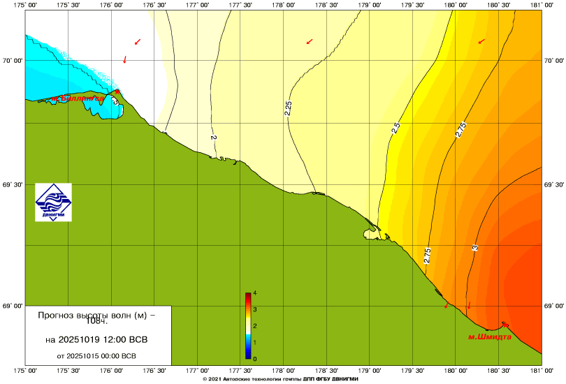 Прогноз на основе численной модели WW III является результатом научных исследований, проводящихся в ФГБУ "ДВНИГМИ".