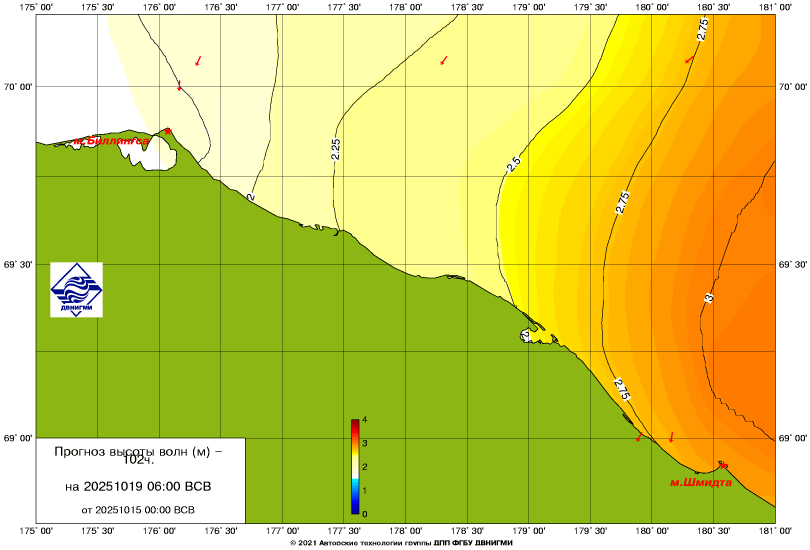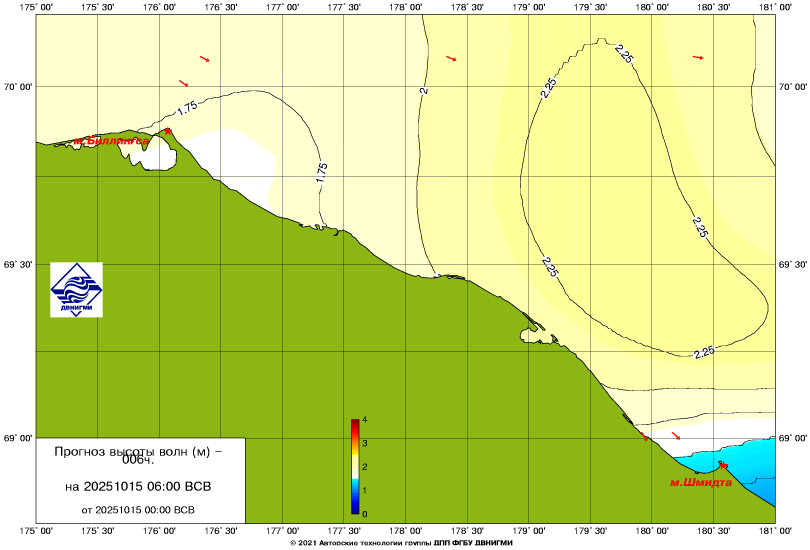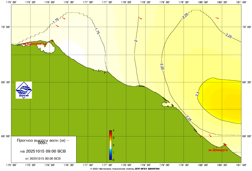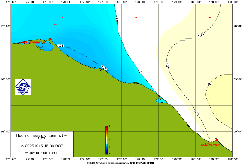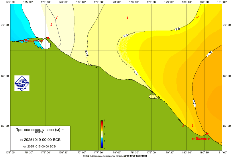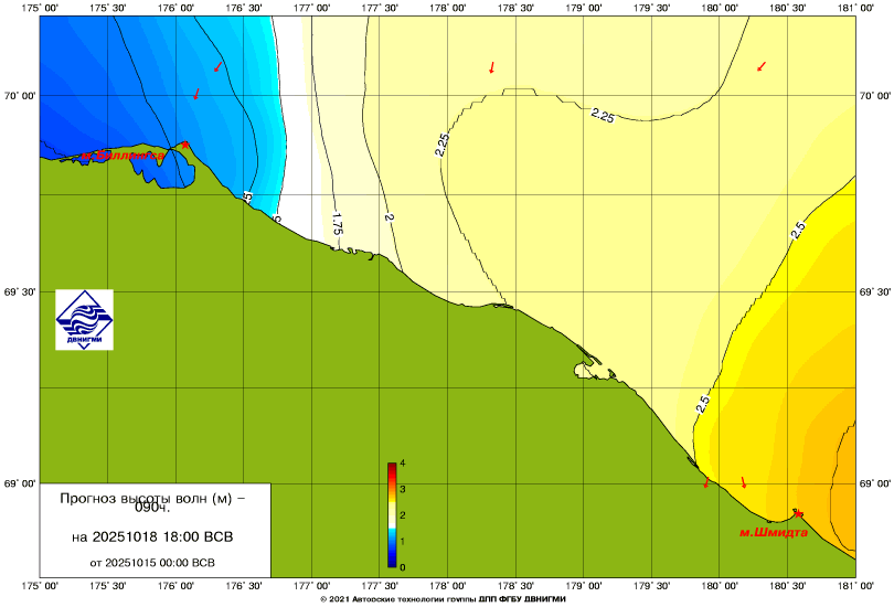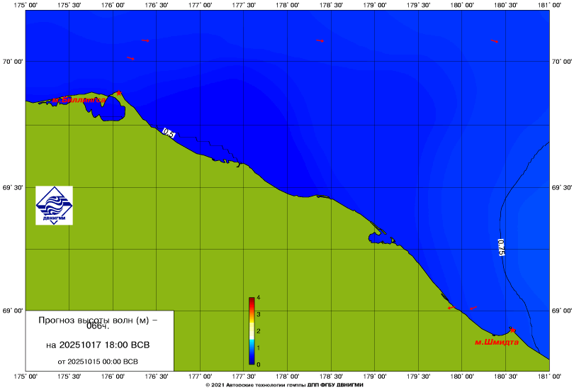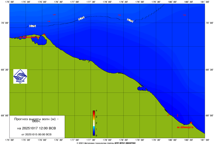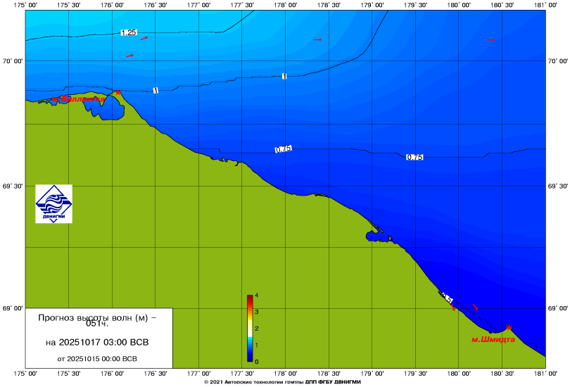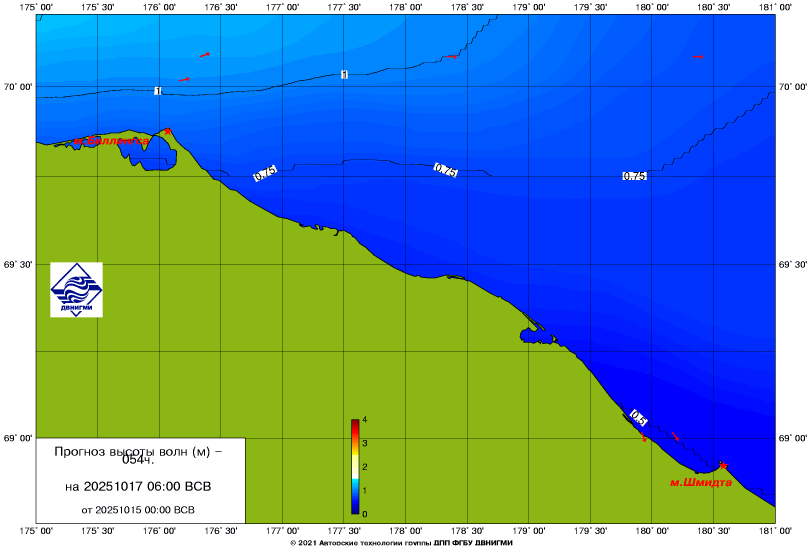 Прогноз на основе численной модели WW III является результатом научных исследований, проводящихся в ФГБУ "ДВНИГМИ".
