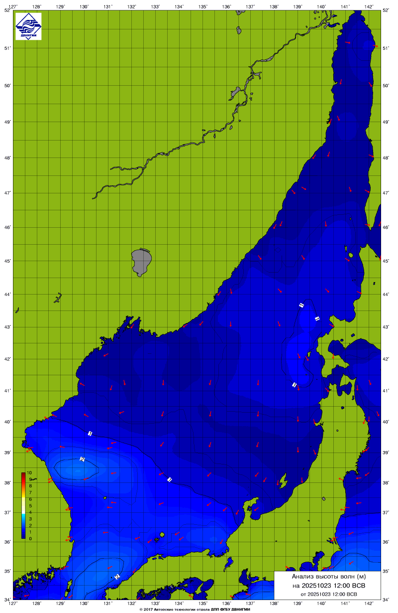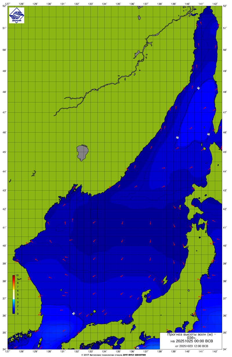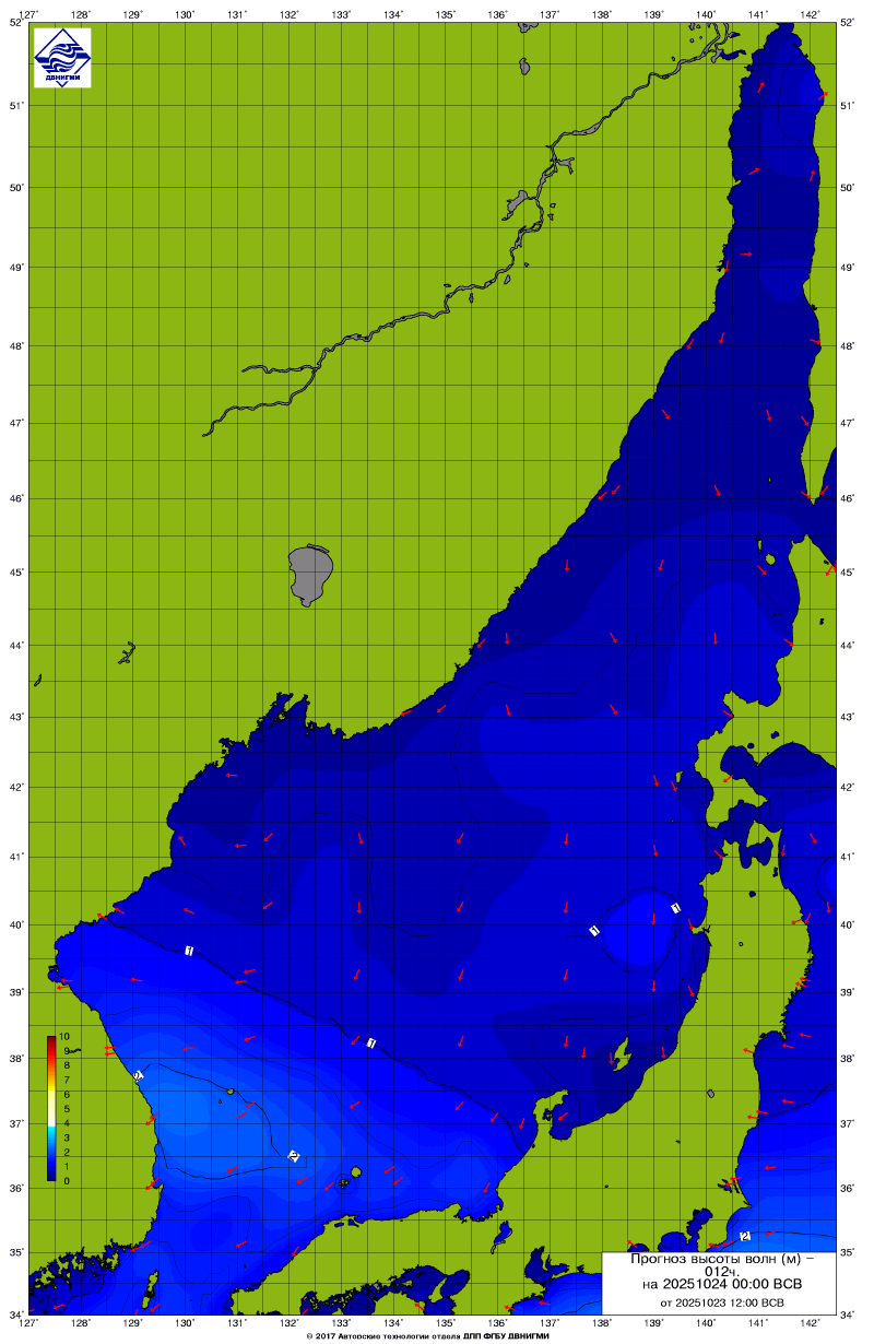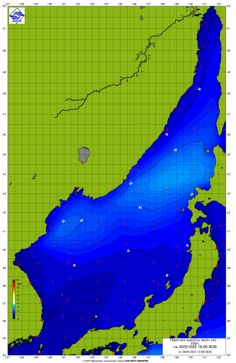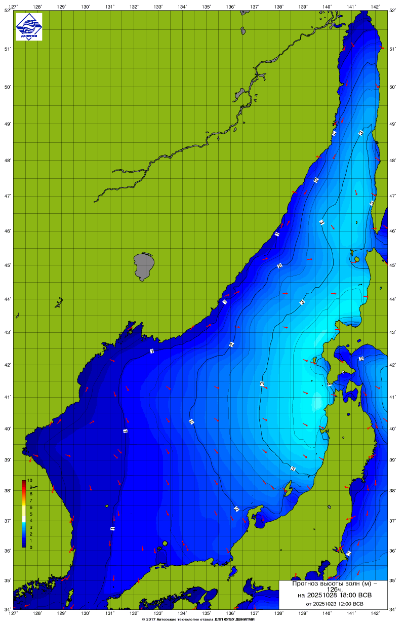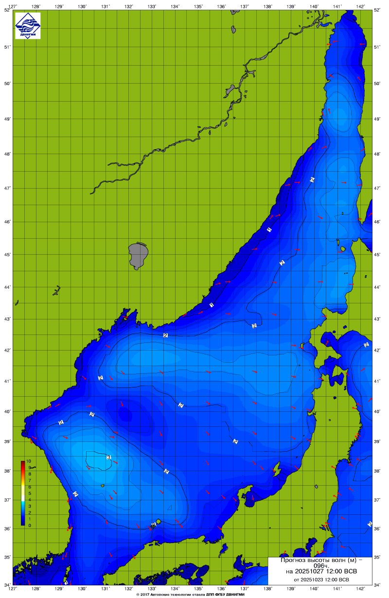 Прогноз на основе численной модели WW III является результатом научных исследований, проводящихся в ФГБУ "ДВНИГМИ".