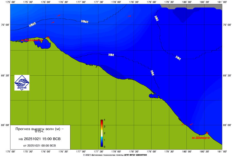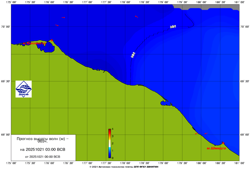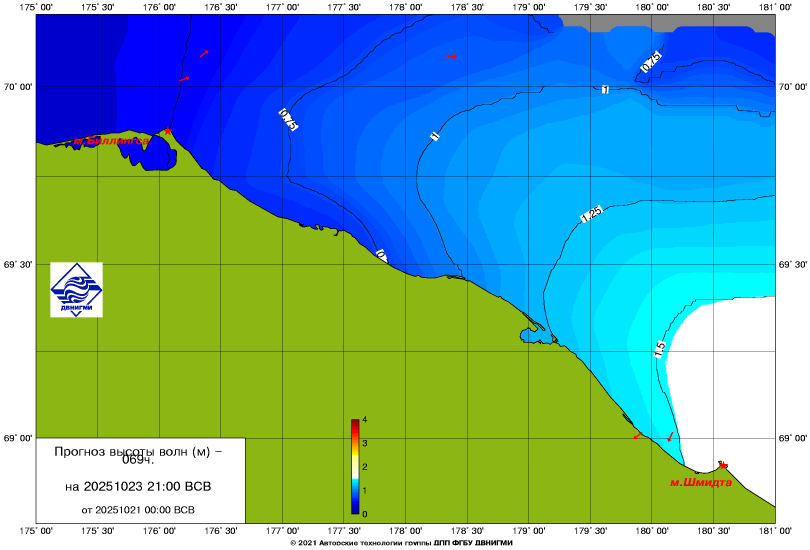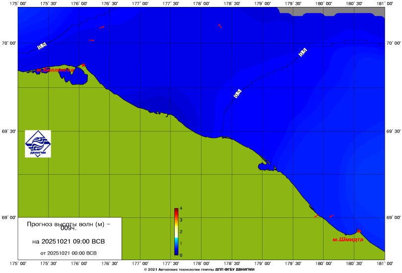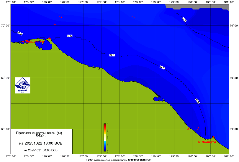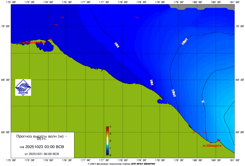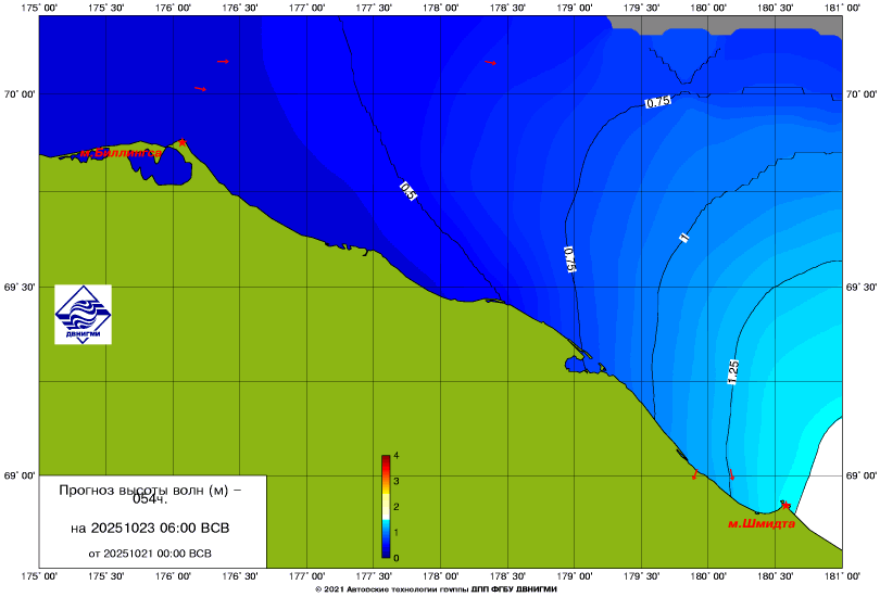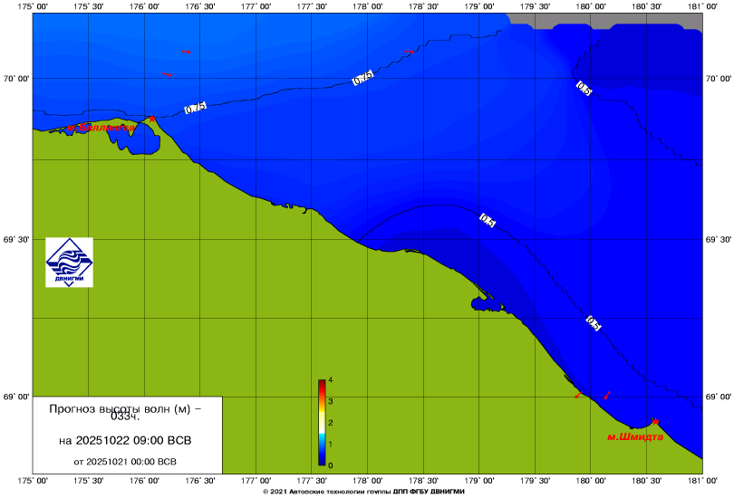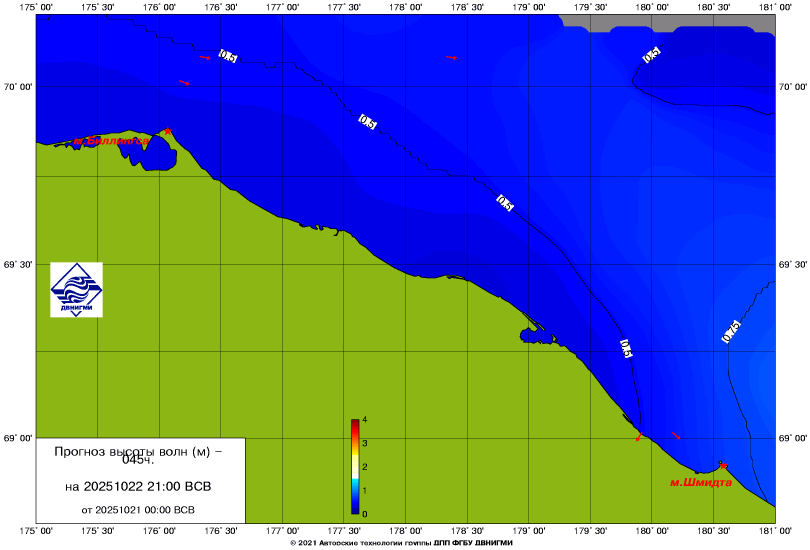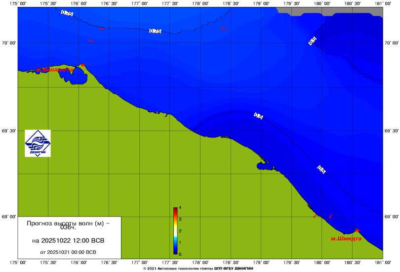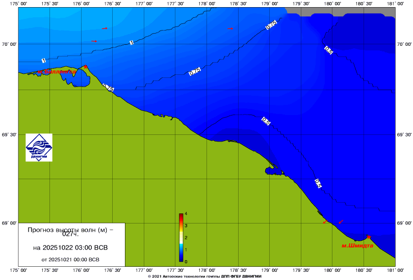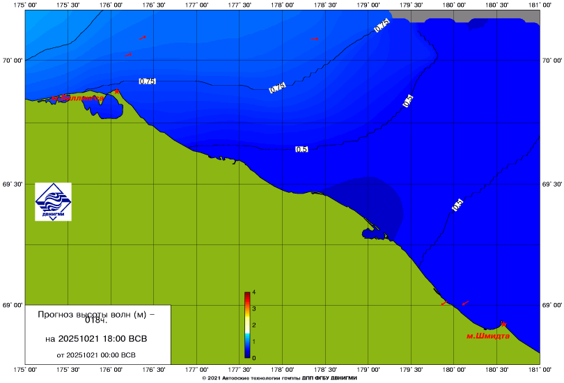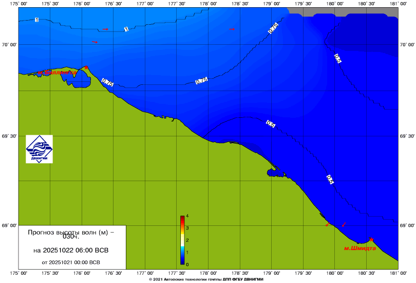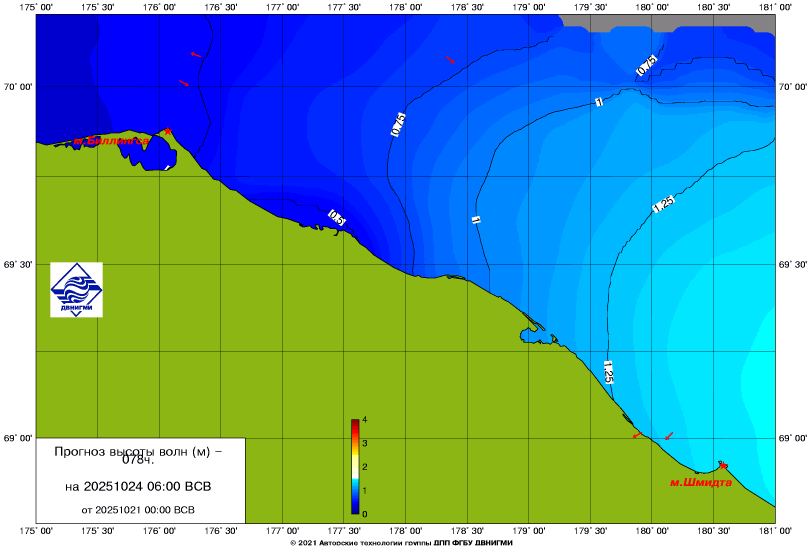 Прогноз на основе численной модели WW III является результатом научных исследований, проводящихся в ФГБУ "ДВНИГМИ".