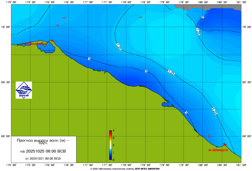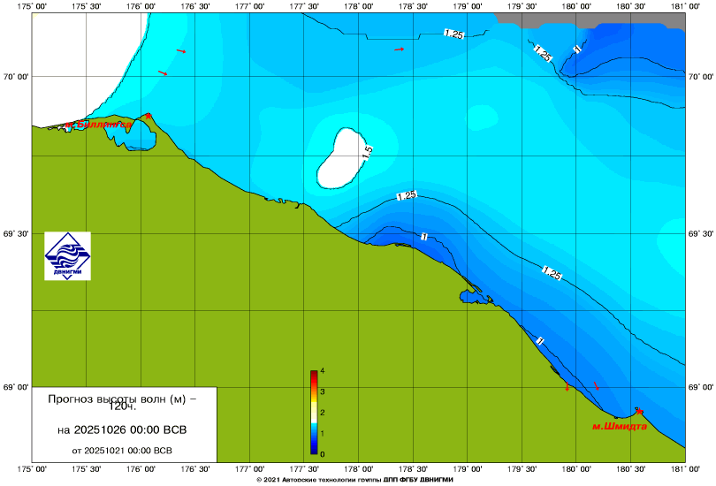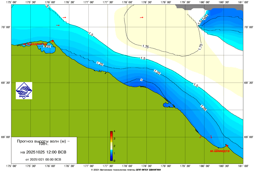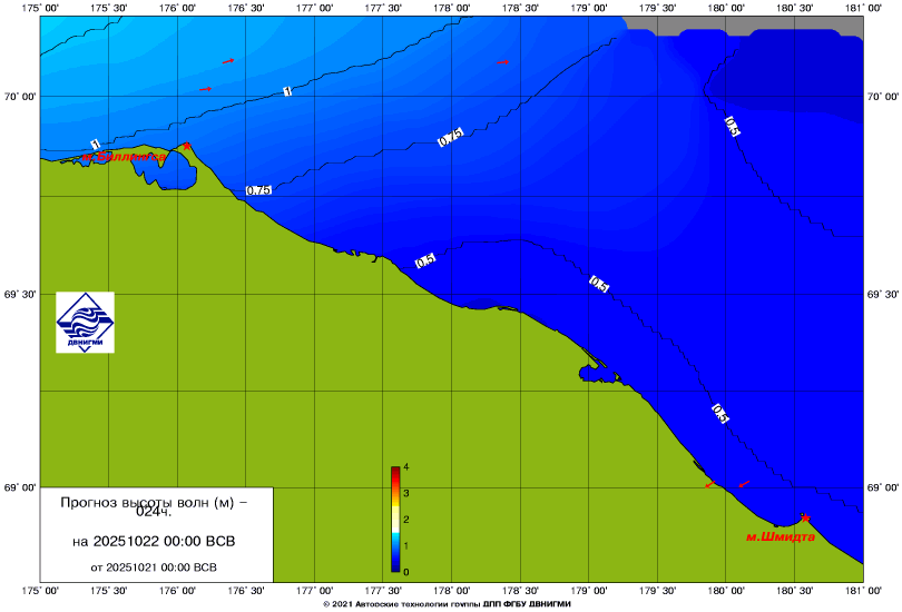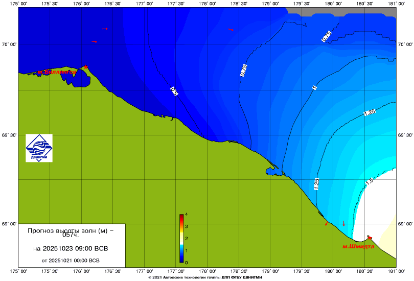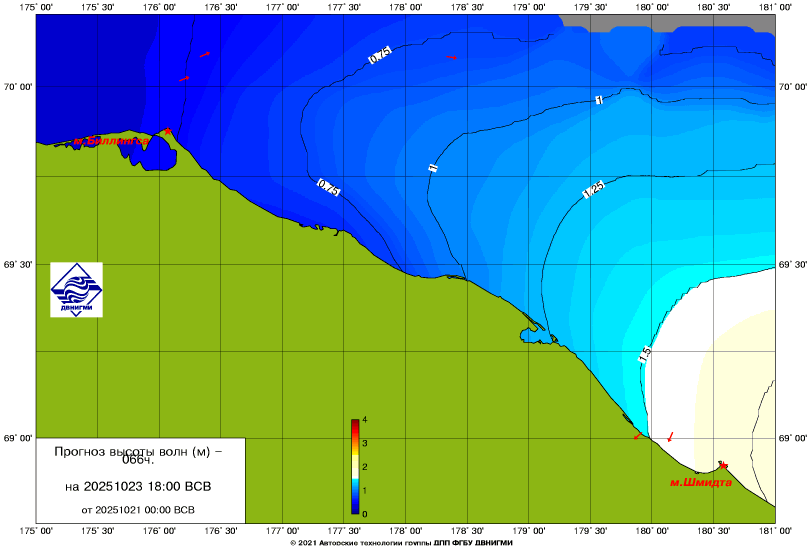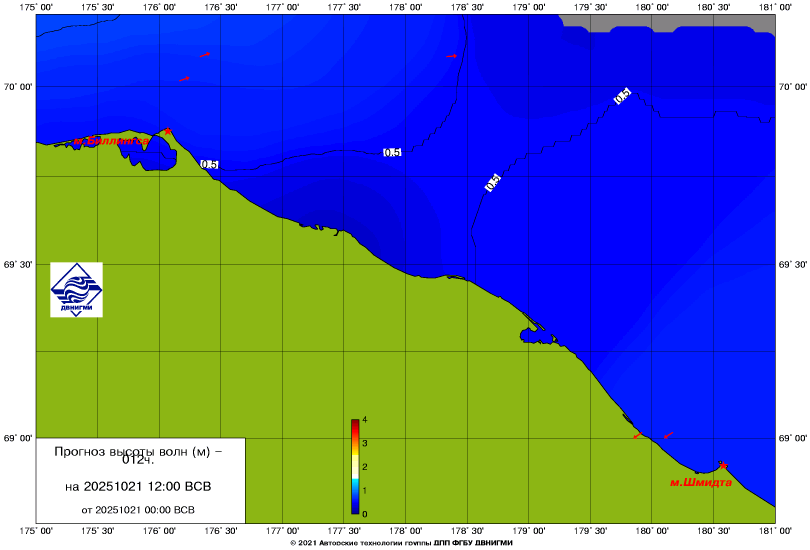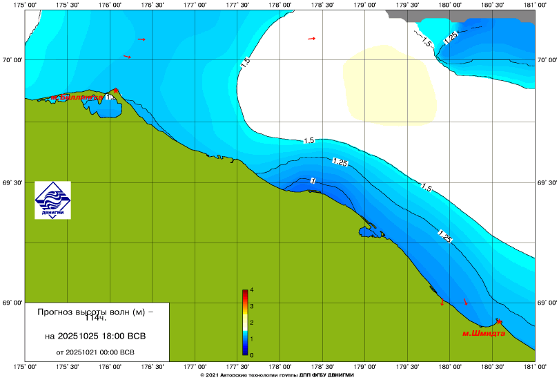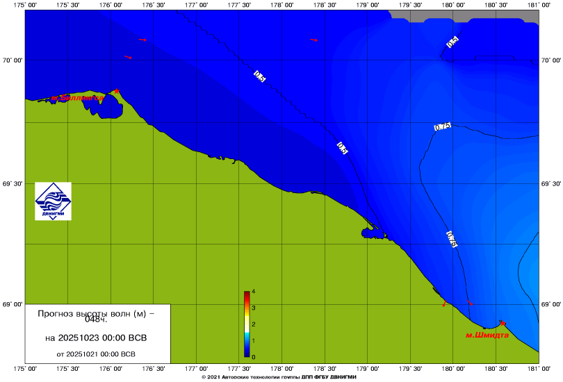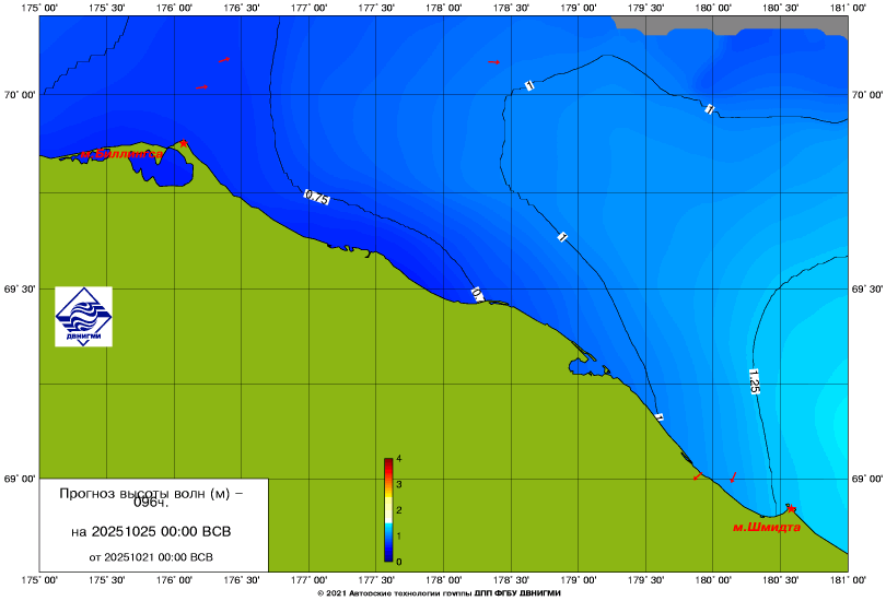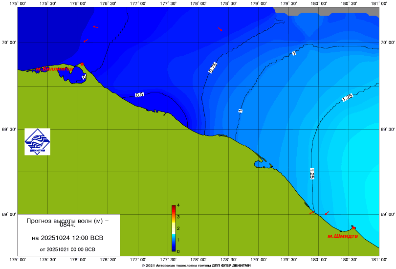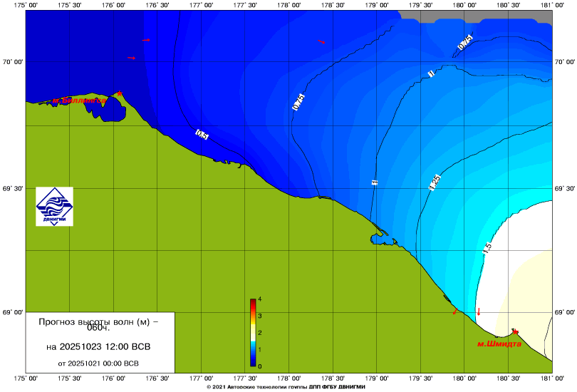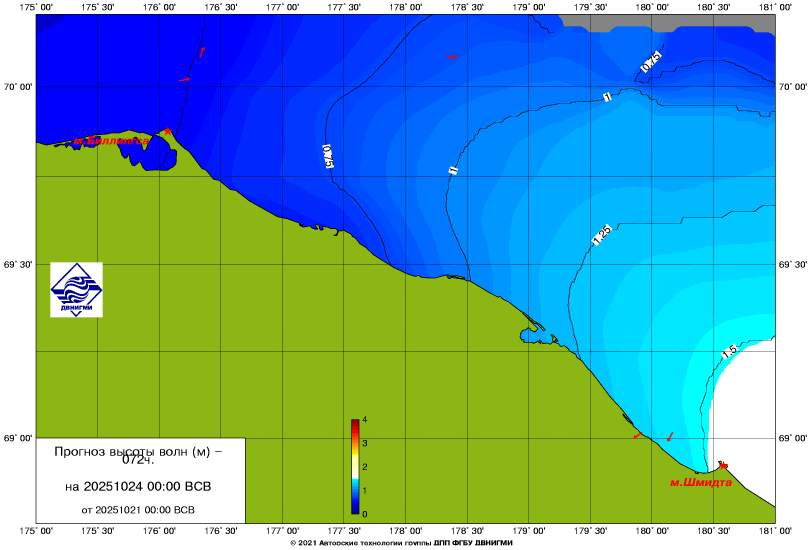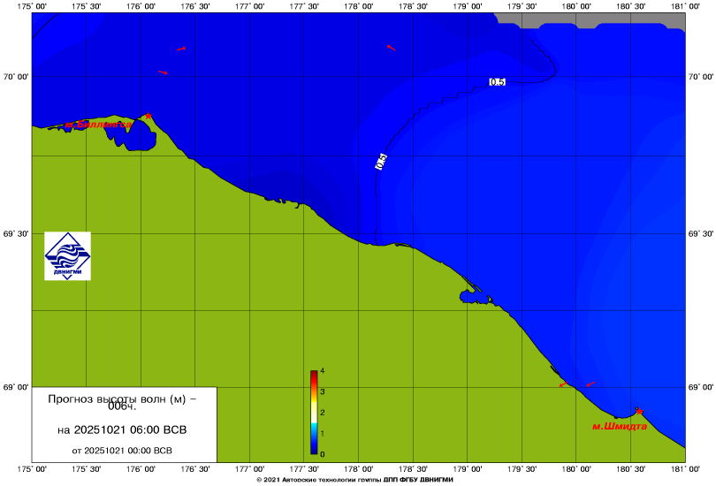 Прогноз на основе численной модели WW III является результатом научных исследований, проводящихся в ФГБУ "ДВНИГМИ".