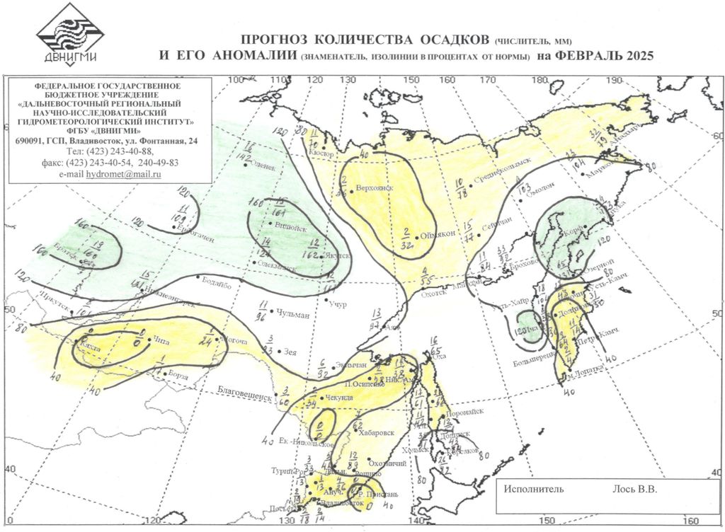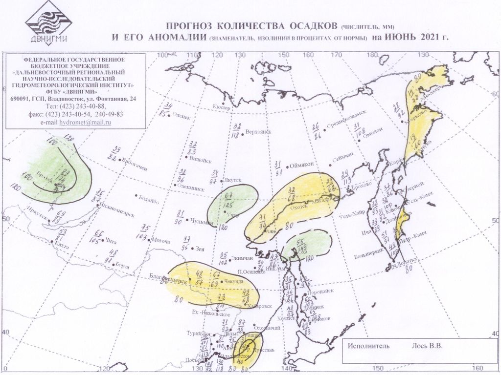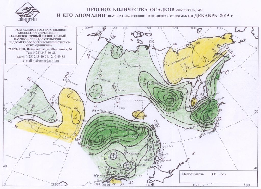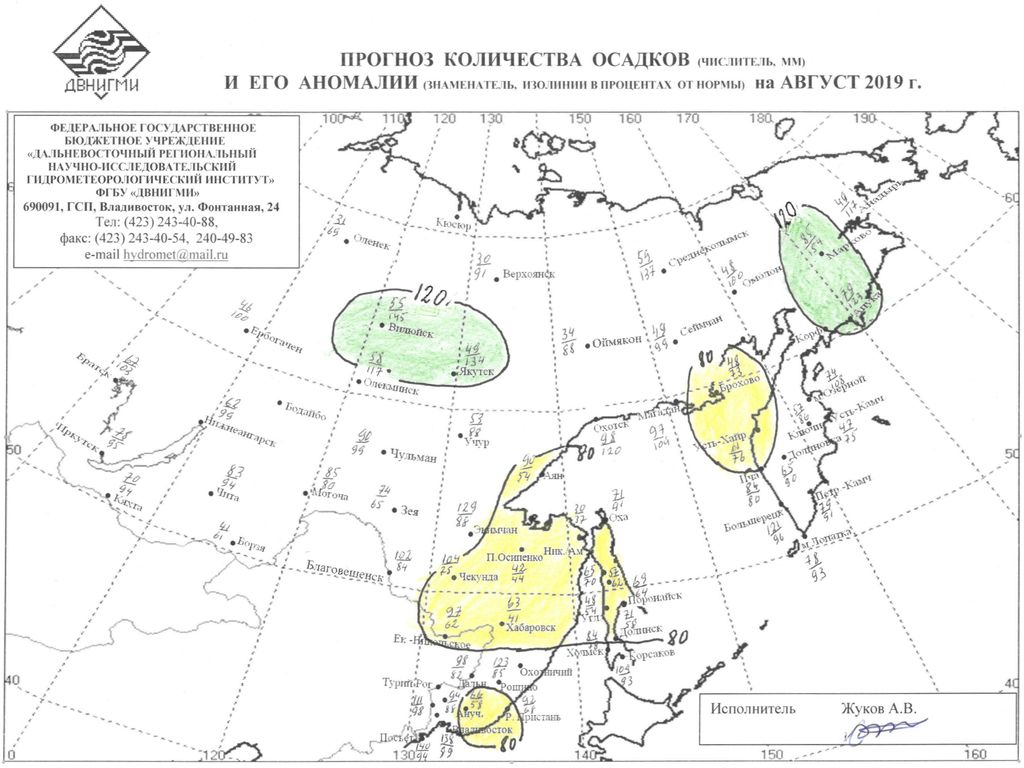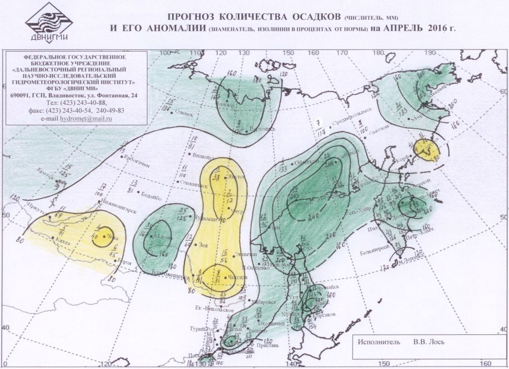 В отделе долгосрочных прогнозов погоды и изучения климата ДВНИГМИ под руководством Свинухова Г.В. был разработан метод прогноза аномалии температуры воздуха и осадков с 5 - месячной заблаговременностью для 70-ти станций Восточной Сибири и Дальнего Востока. В декабре 1973 г. данный метод был утвержден Центральной методической комиссией и рекомендован к использованию в оперативной практике в качестве консультативного. С января 1974 г. и по настоящее время прогностические карты аномалии средней месячной температуры воздуха (ΔΤ) и сумм осадков (ΔR) регулярно составляются и рассылаются для использования во все управления гидрометслужбы на территории Восточной Сибири (ВС) и Дальнего Востока (ДВ).