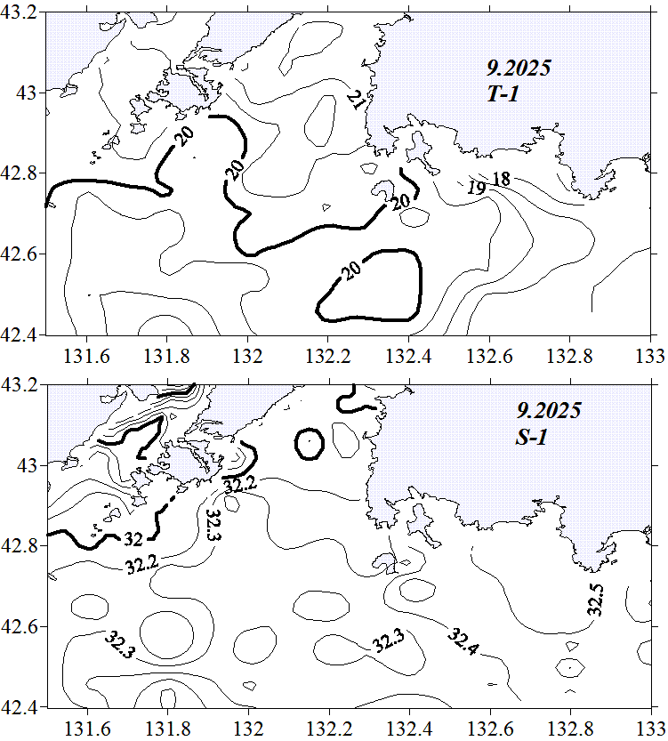 Температура и солёность на горизонте 20м