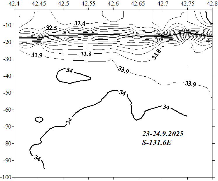 Солёность на разрезе по 131.6 в.д.