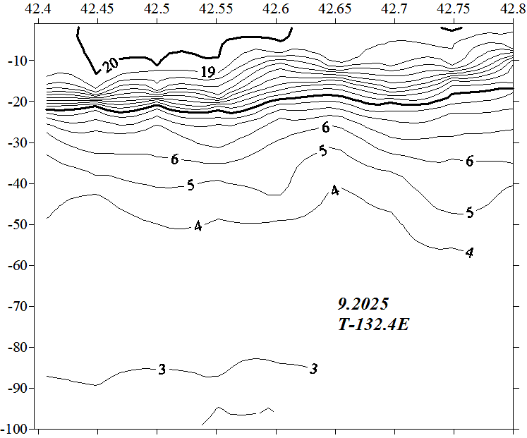 Температура на разрезе по 132.0 в.д.