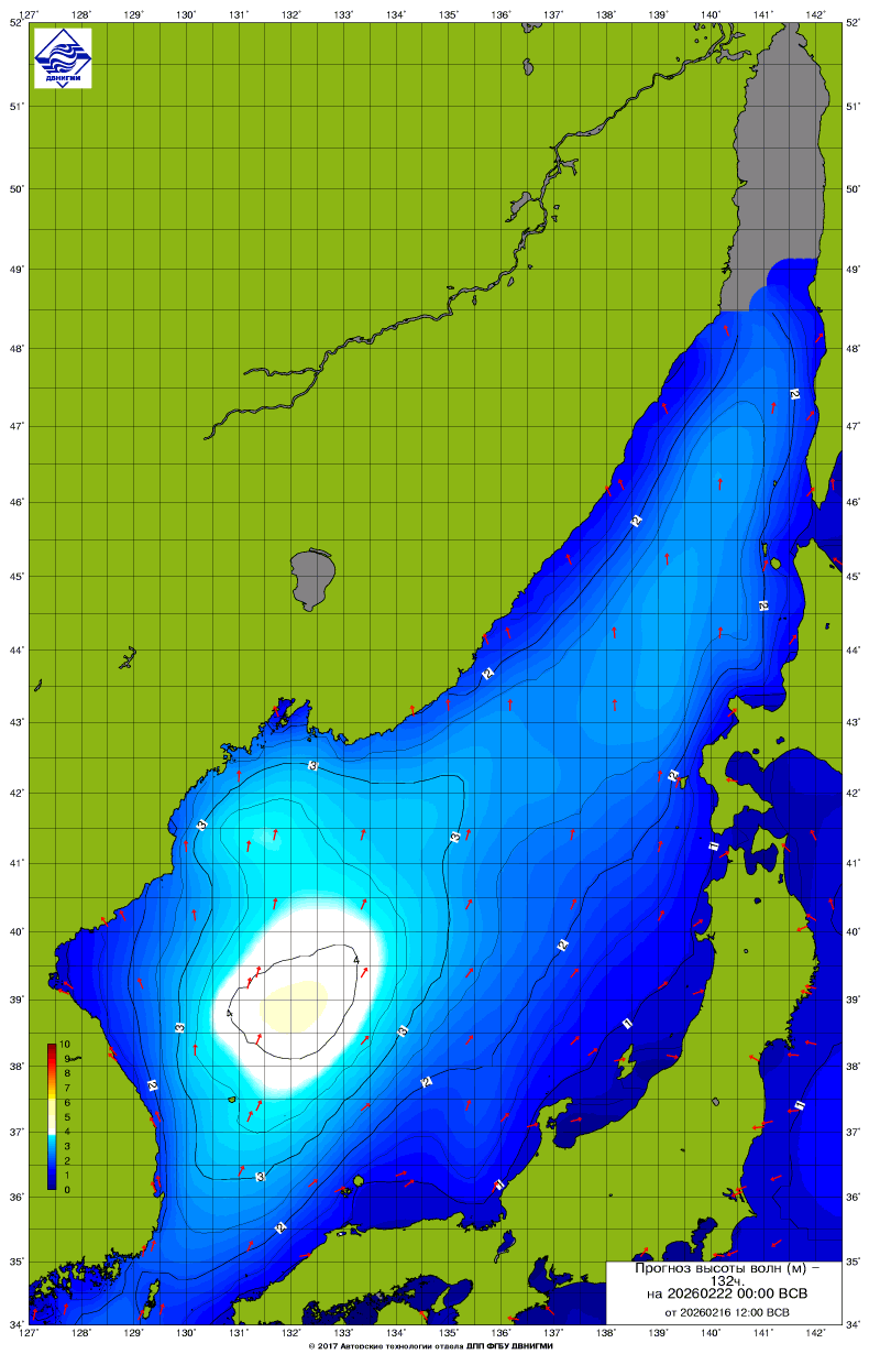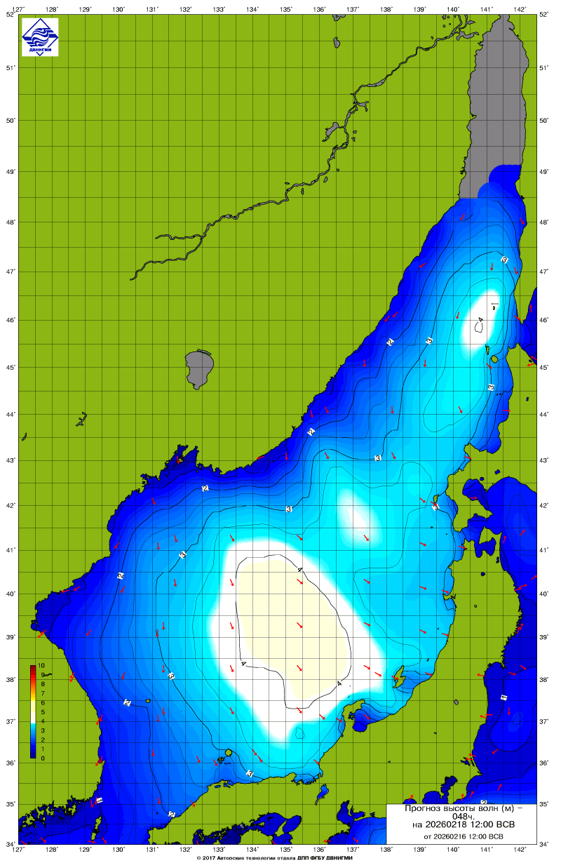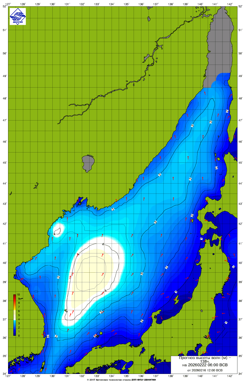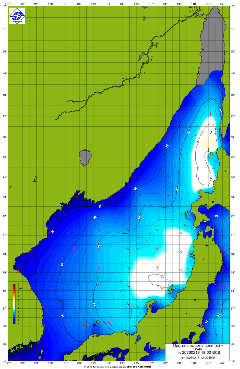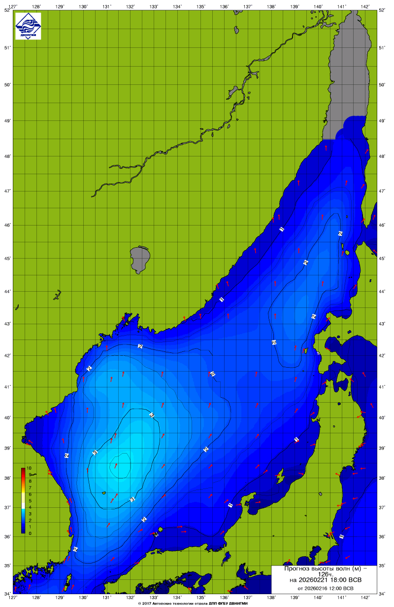 Прогноз на основе численной модели WW III является результатом научных исследований, проводящихся в ФГБУ "ДВНИГМИ".
