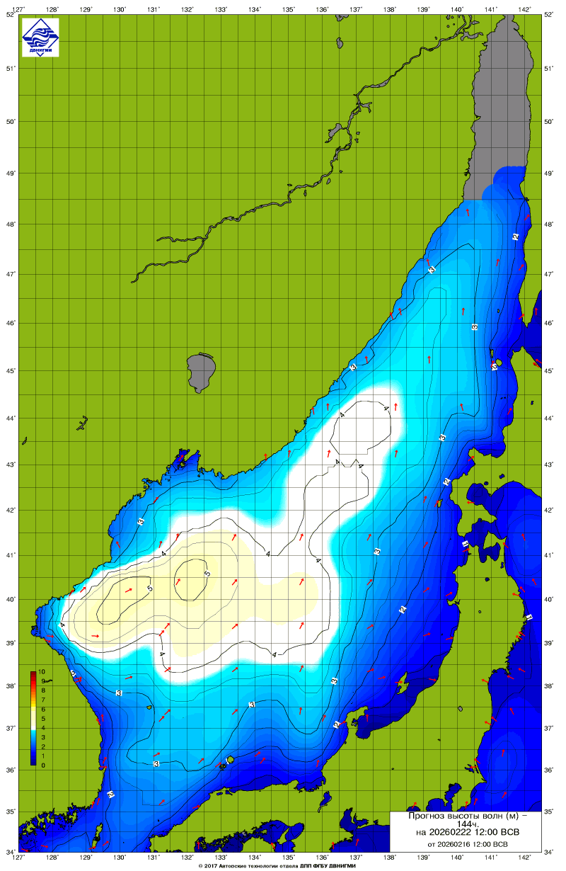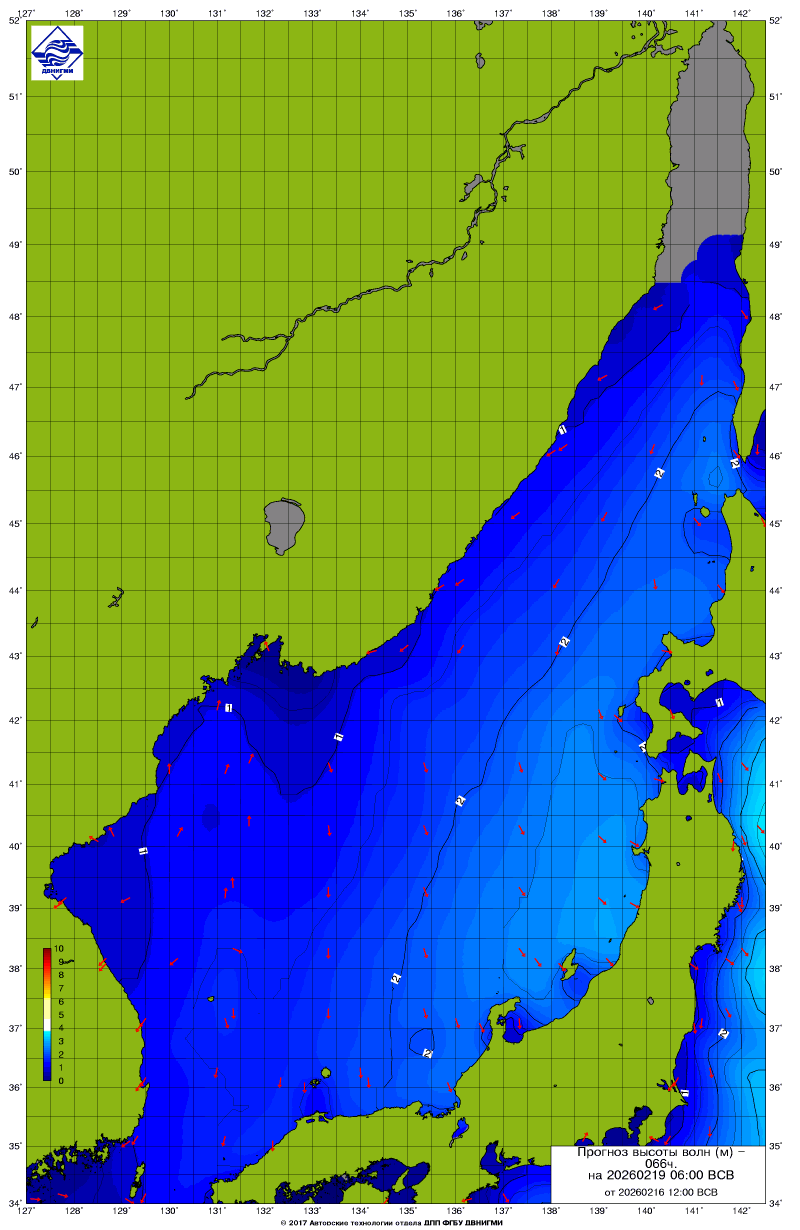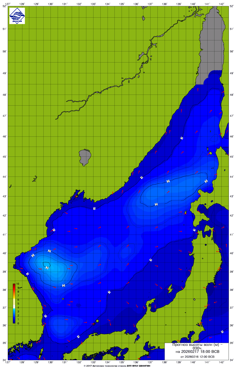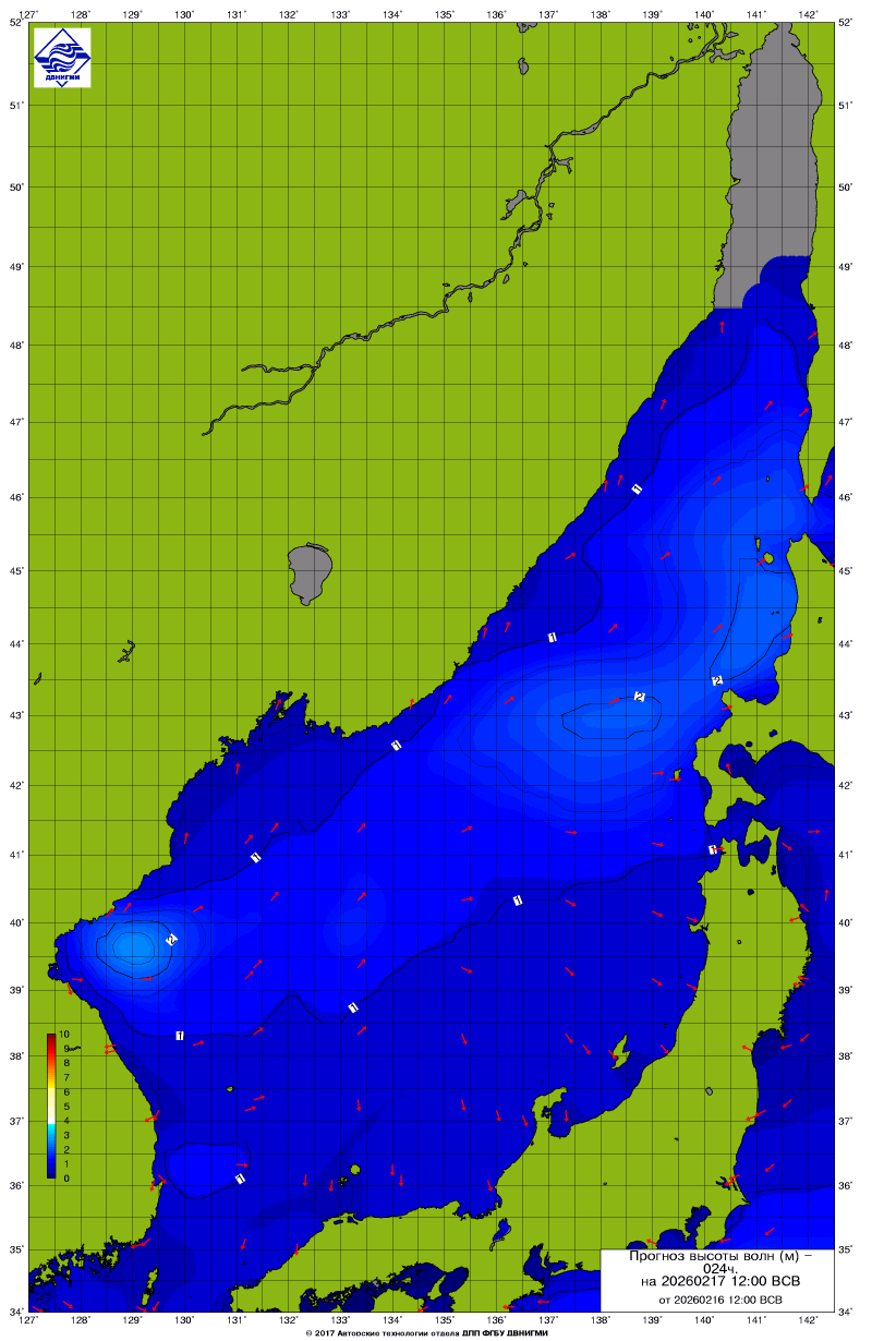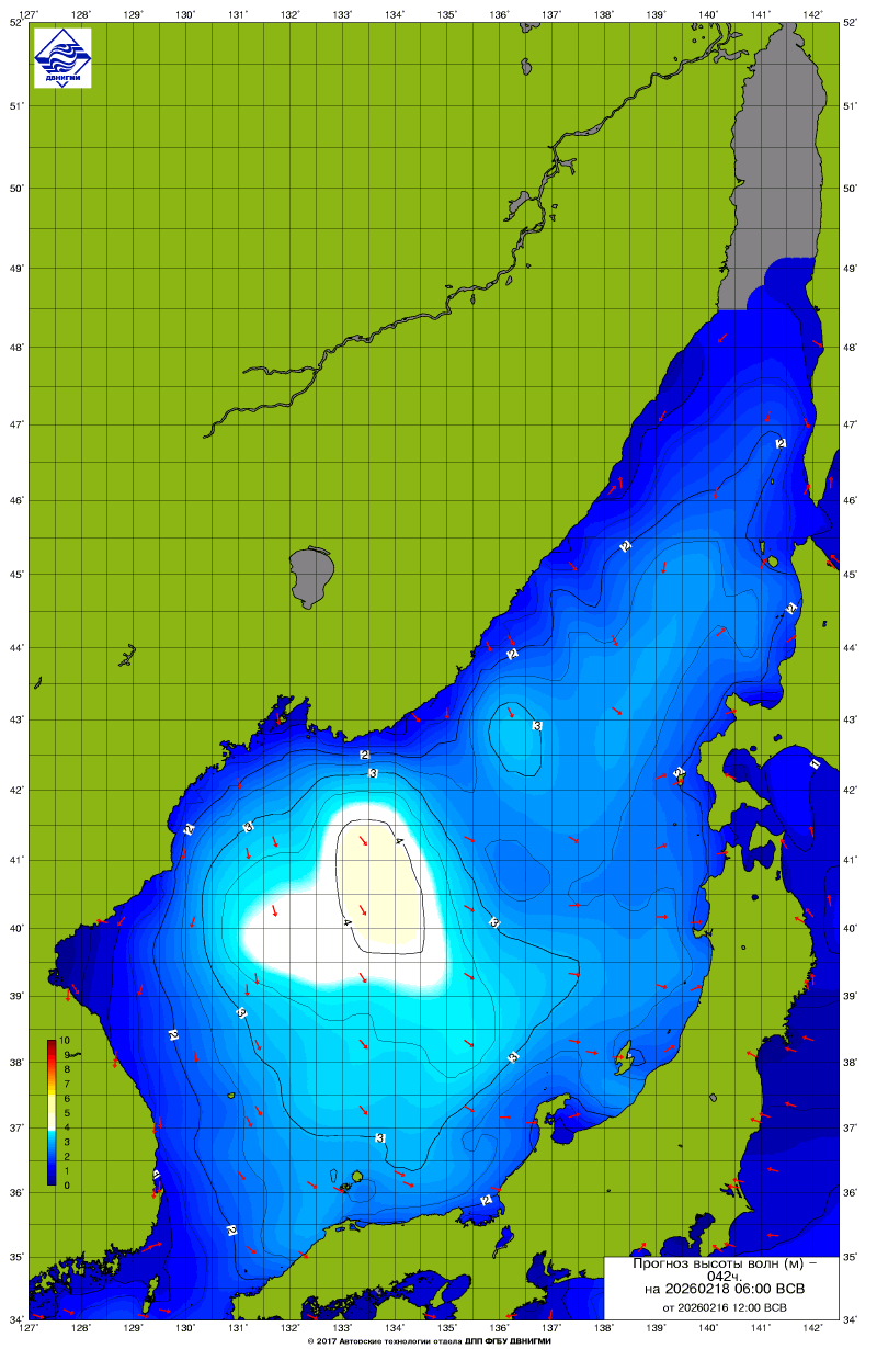 Прогноз на основе численной модели WW III является результатом научных исследований, проводящихся в ФГБУ "ДВНИГМИ".