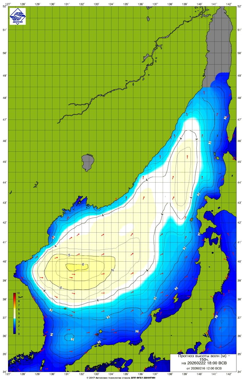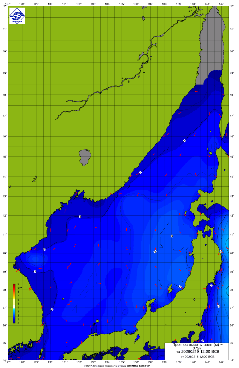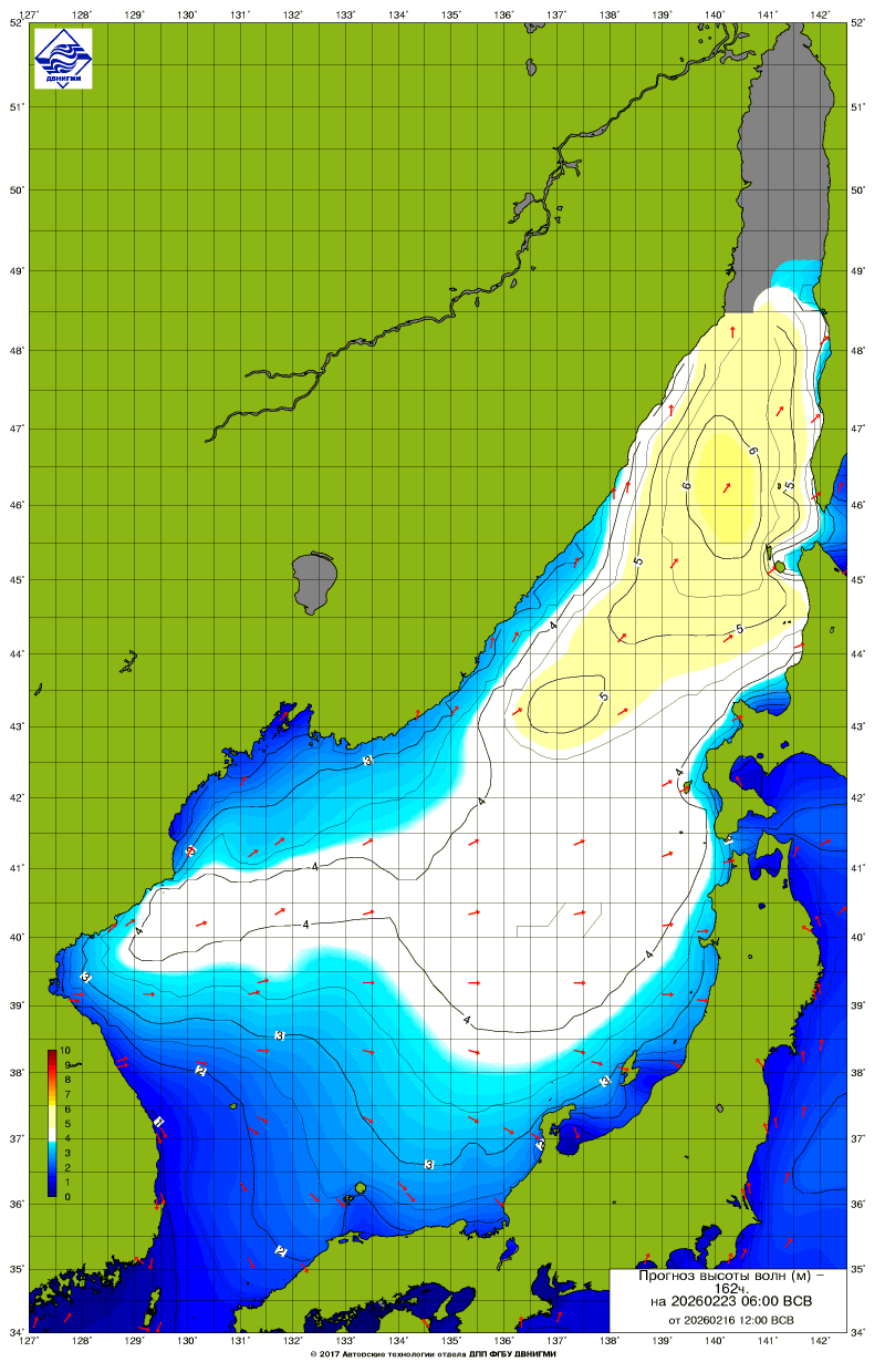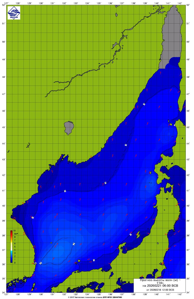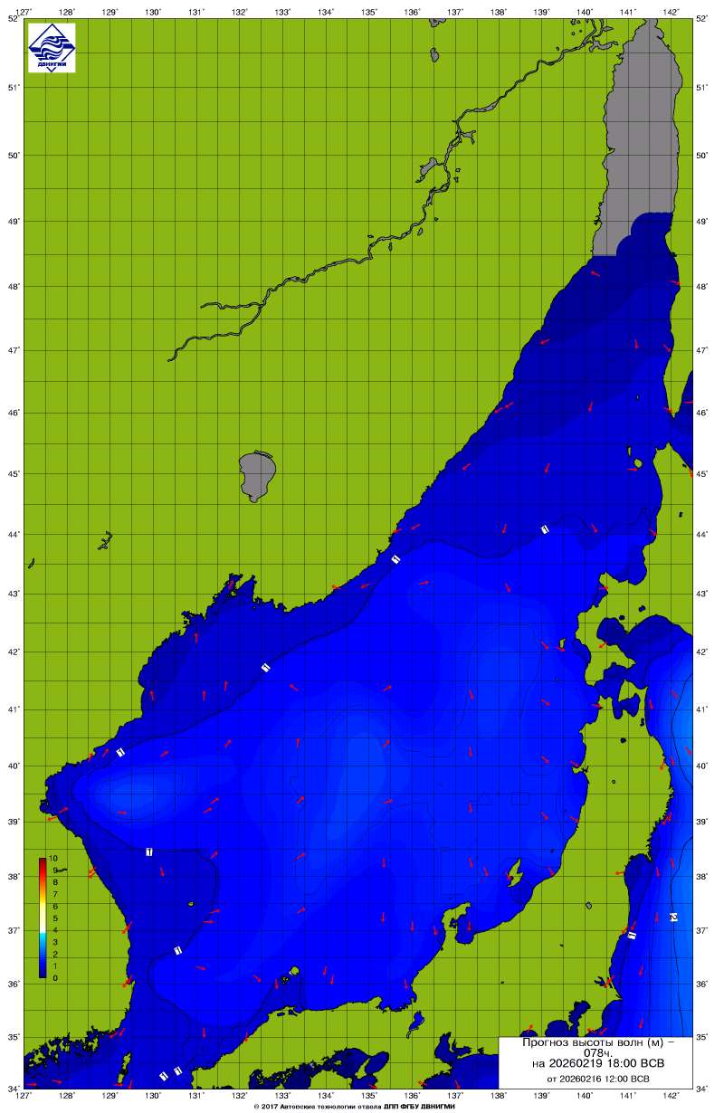 Прогноз на основе численной модели WW III является результатом научных исследований, проводящихся в ФГБУ "ДВНИГМИ".