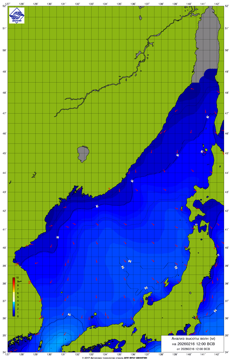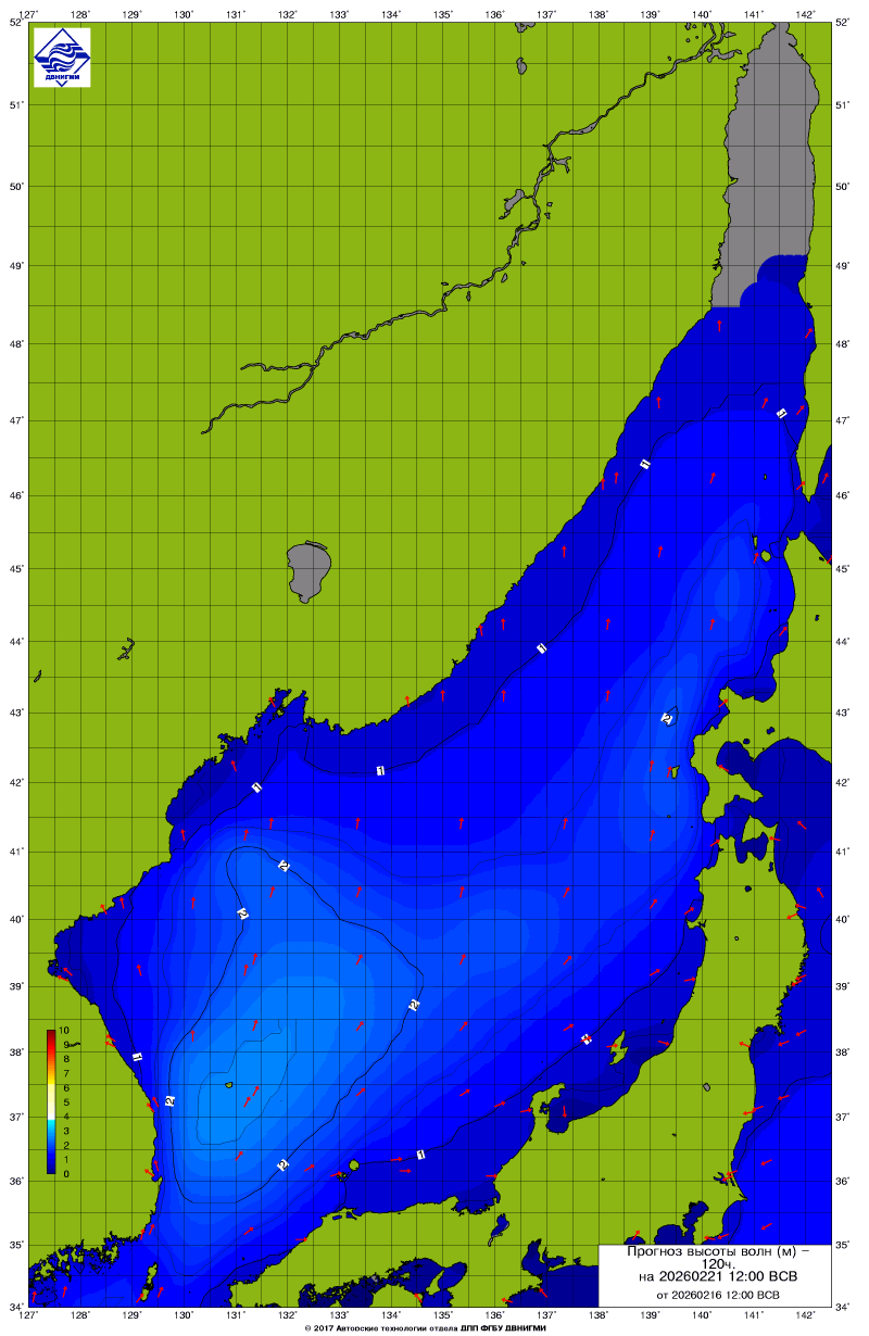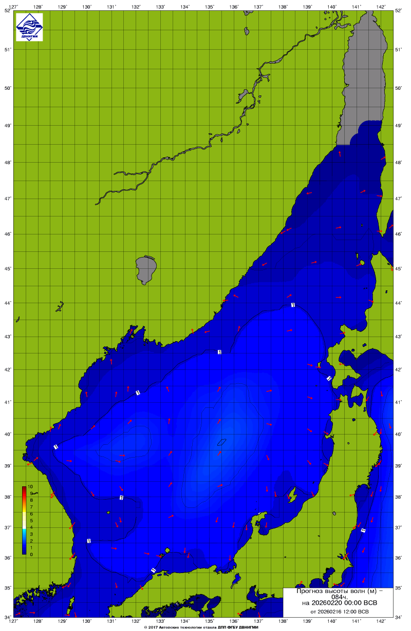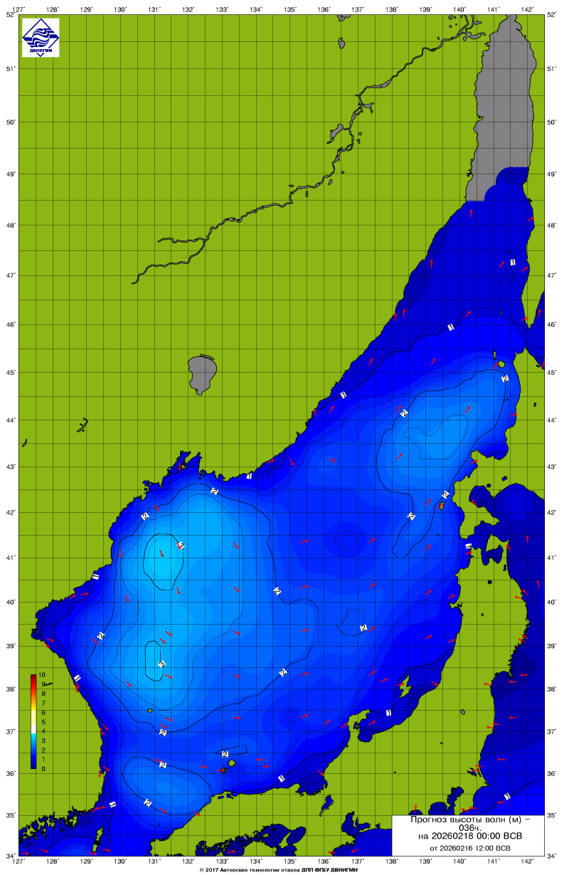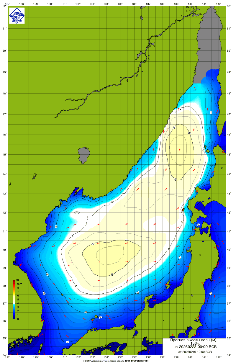 Прогноз на основе численной модели WW III является результатом научных исследований, проводящихся в ФГБУ "ДВНИГМИ".