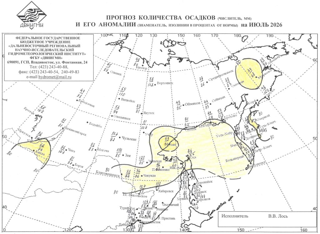 В отделе долгосрочных прогнозов погоды и изучения климата ДВНИГМИ под руководством Свинухова Г.В. был разработан метод прогноза аномалии температуры воздуха и осадков с 5 - месячной заблаговременностью для станций Восточной Сибири и Дальнего Востока. В декабре 1973 г. данный метод был утвержден Центральной методической комиссией и рекомендован к использованию в оперативной практике в качестве консультативного. С января 1974 г. и по настоящее время прогностические карты аномалии средней месячной температуры воздуха (ΔΤ) и сумм осадков (ΔR) регулярно составляются и рассылаются для использования во все управления гидрометслужбы на территории Восточной Сибири (ВС) и Дальнего Востока (ДВ).