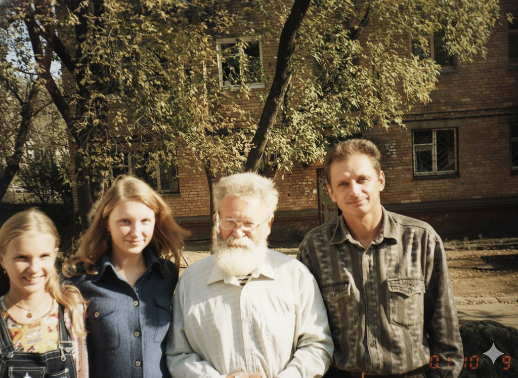 Ю.В. Казанцев, Игорь (сын Е.А. Микруковой) и его дочери (1998 г.)