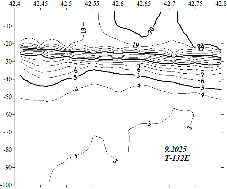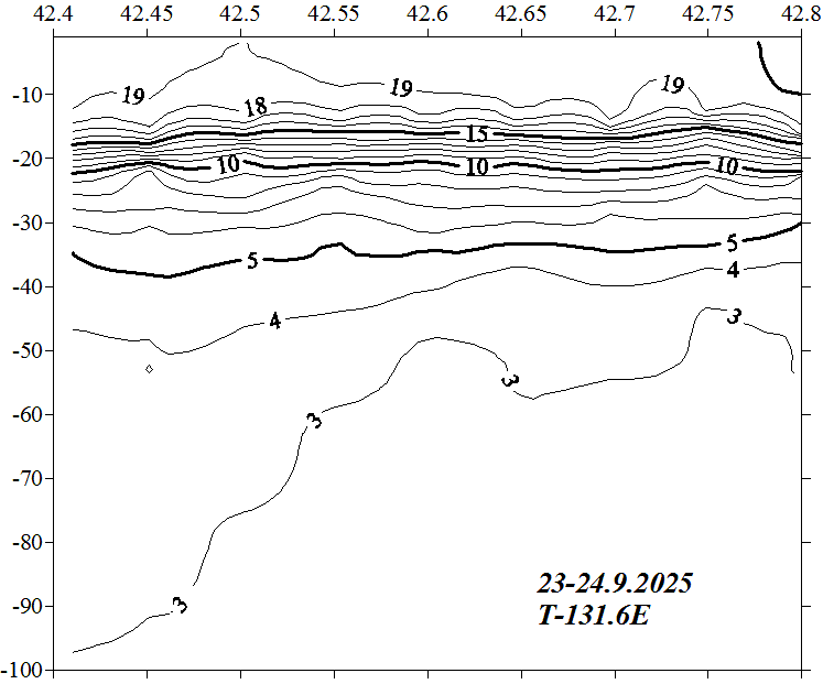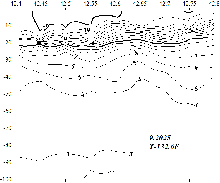 Температура на разрезе по 132.6 в.д.