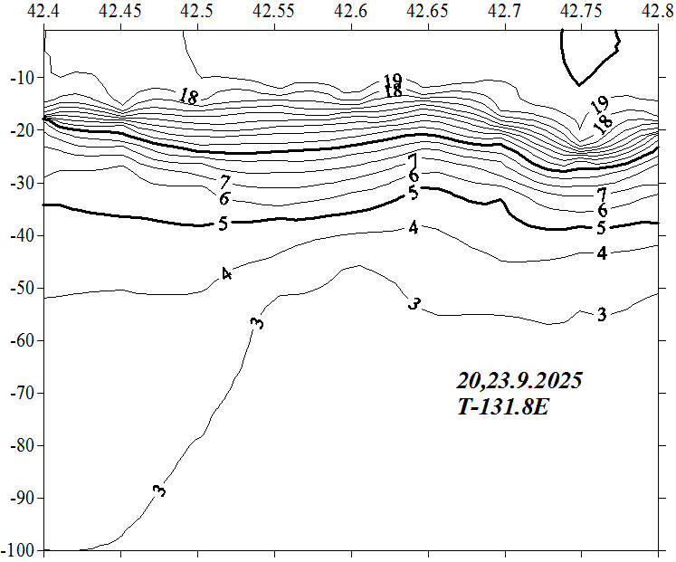 Температура на разрезе по 131.8 в.д.