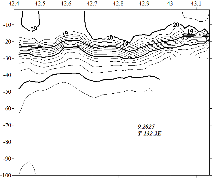 Температура на разрезе по 132.0 в.д.