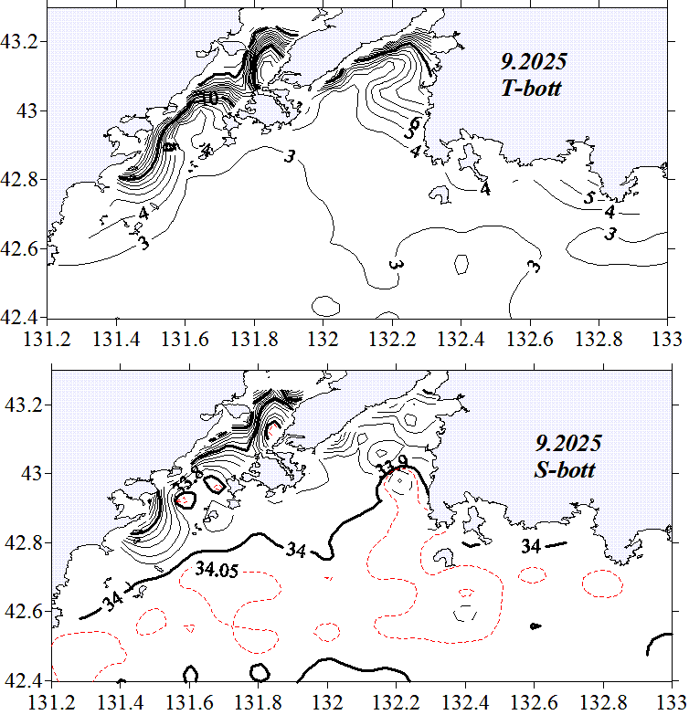 Температура и солёность в придонном слое