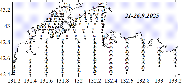 Наблюдения выполняются по системе специально ориентированных океанографических разрезов, положение которых определяется данными о водообмене с глубоководной частью Японского моря, циркуляцией его вод, особенностями гидрологической структуры и стоком рек.