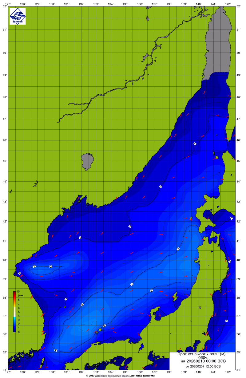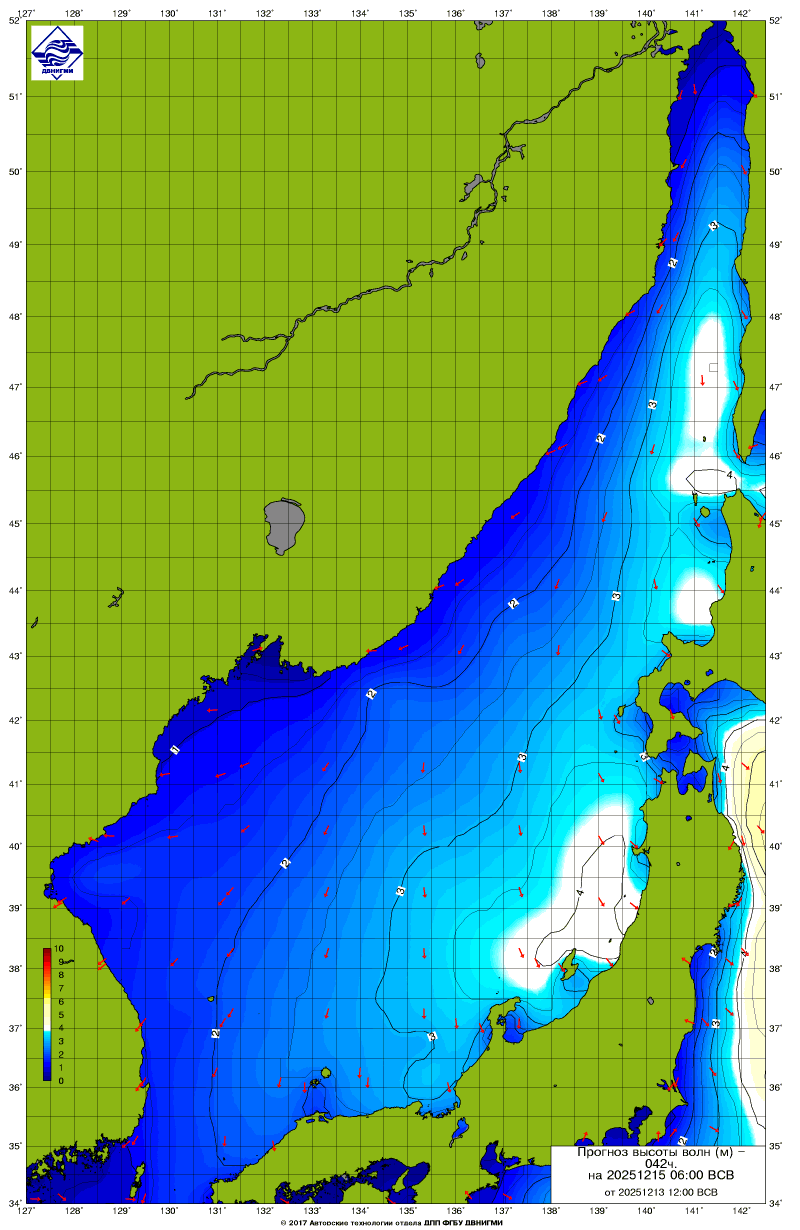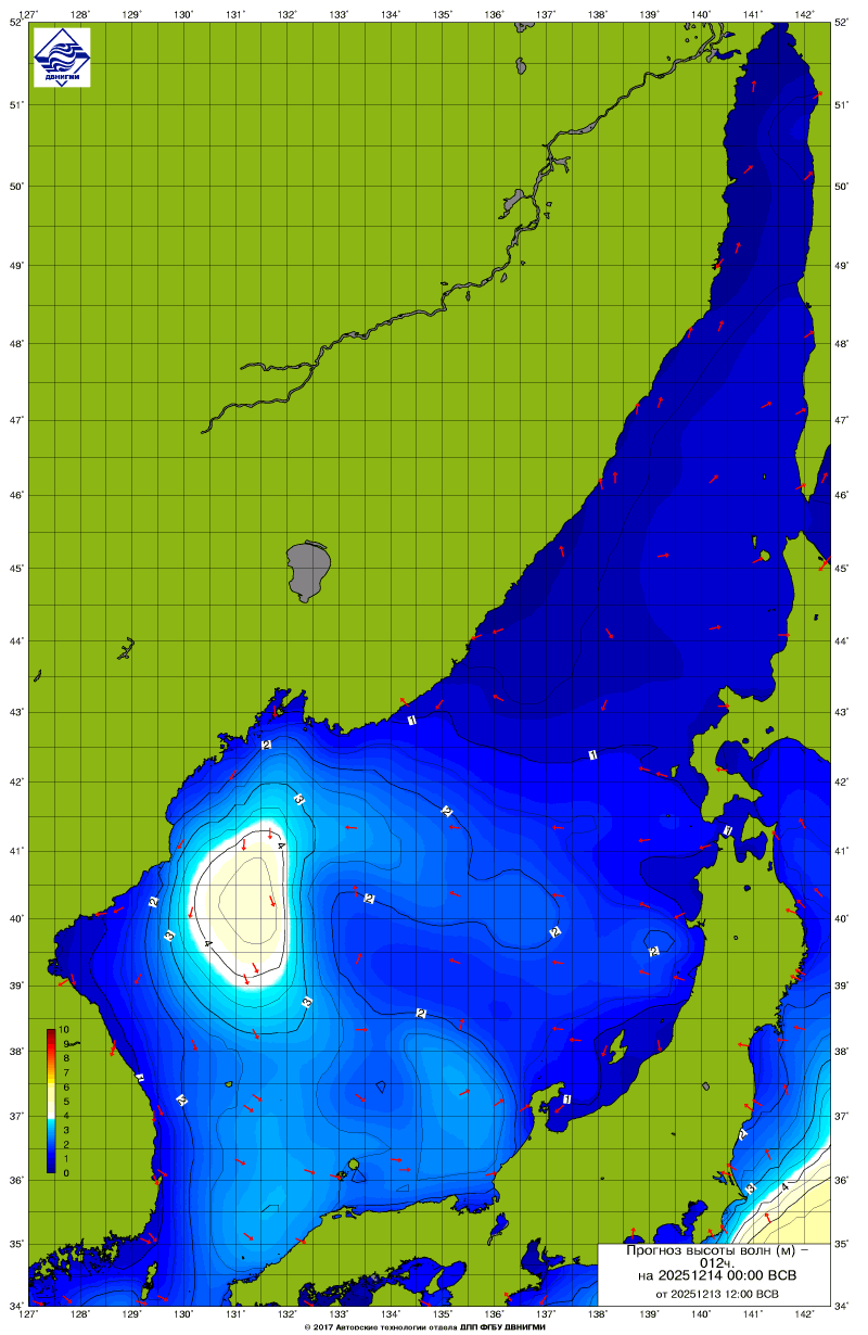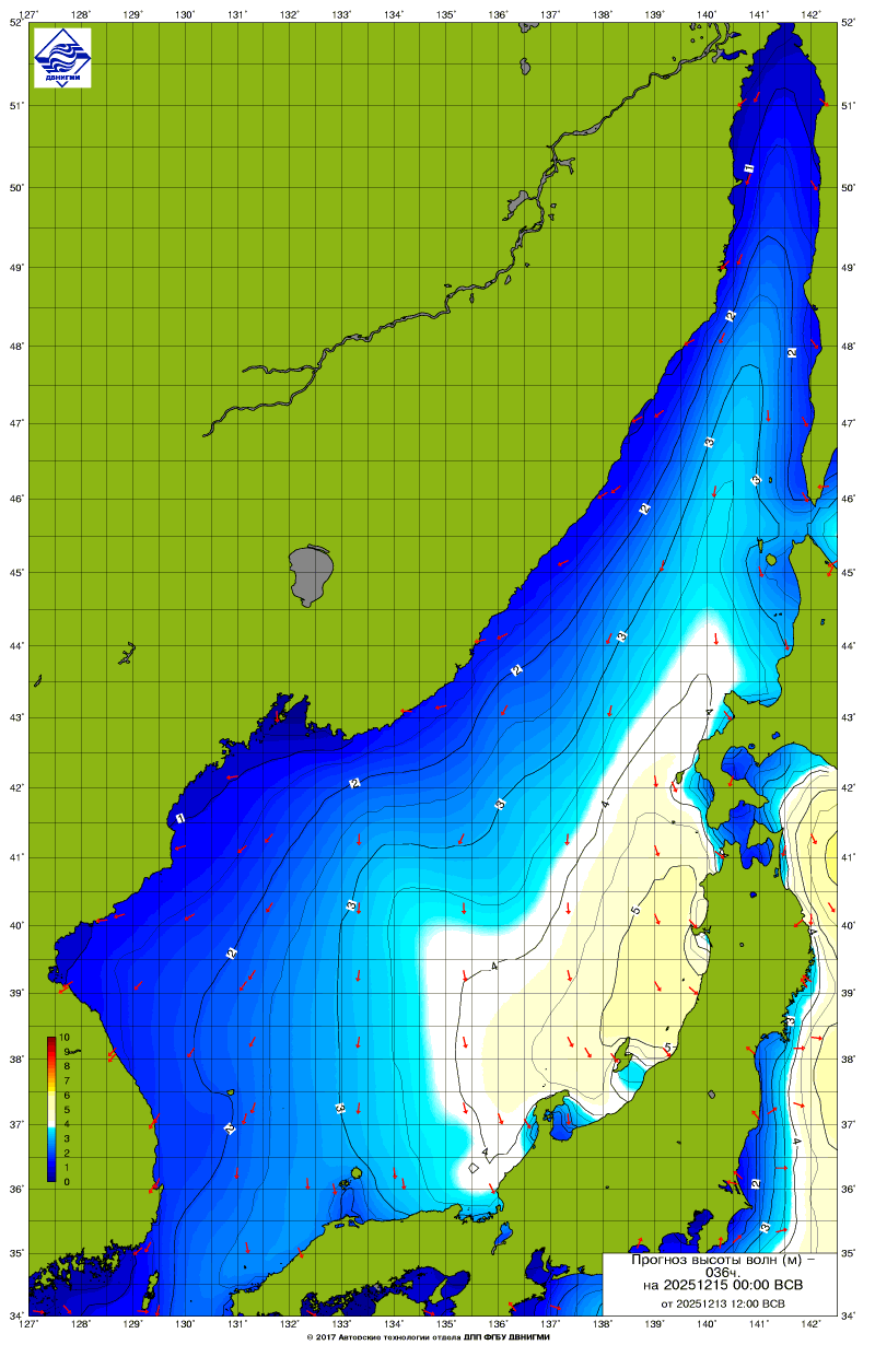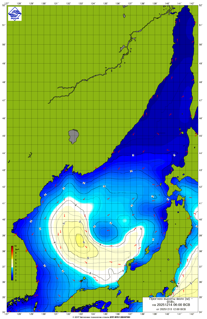 Прогноз на основе численной модели WW III является результатом научных исследований, проводящихся в ФГБУ "ДВНИГМИ".