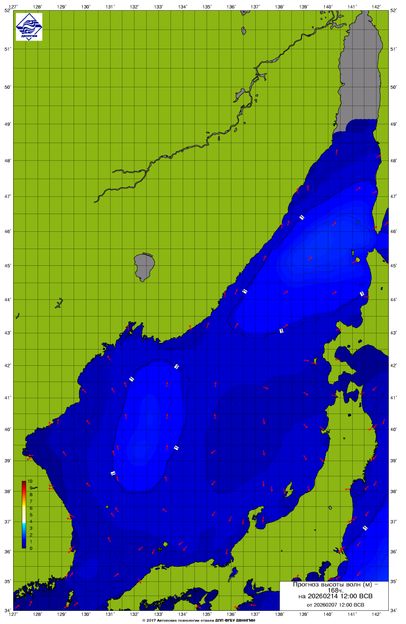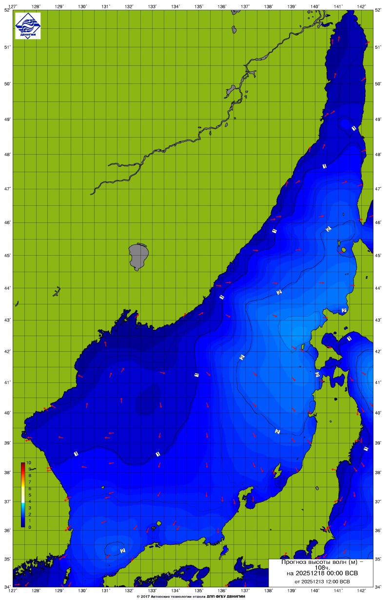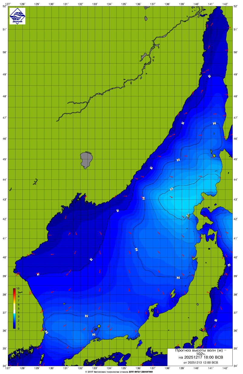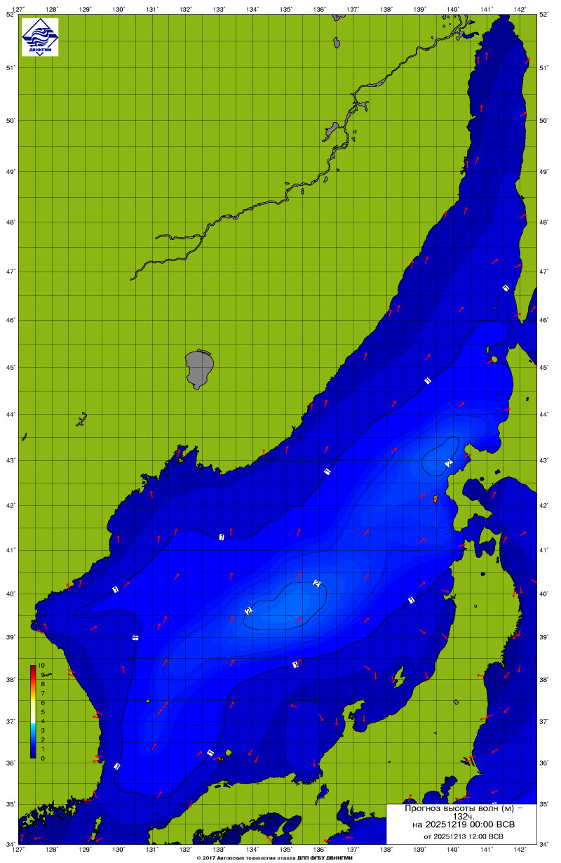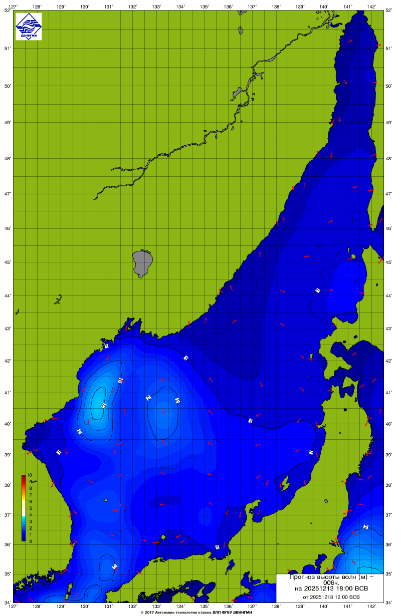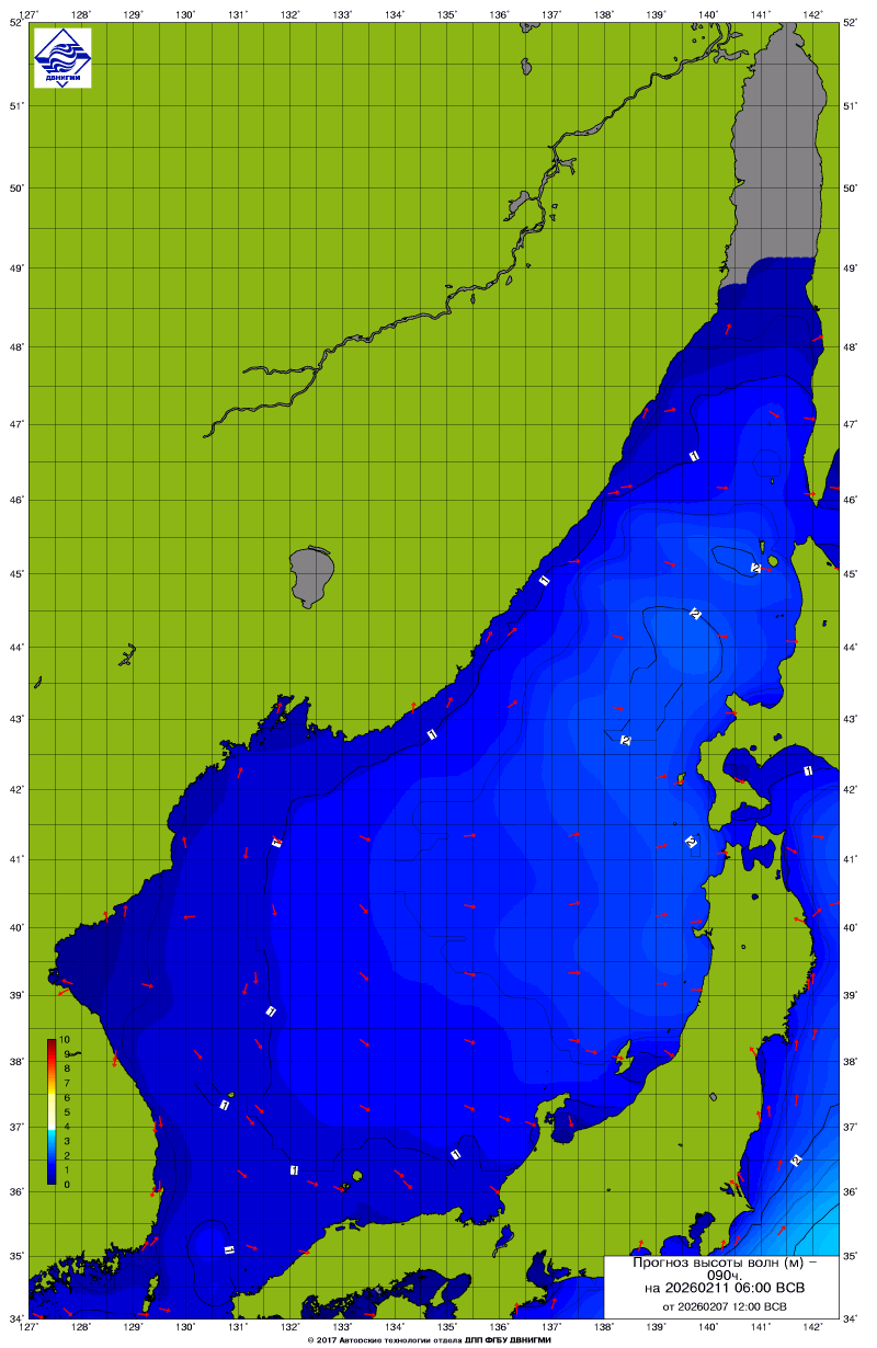 Прогноз на основе численной модели WW III является результатом научных исследований, проводящихся в ФГБУ "ДВНИГМИ".