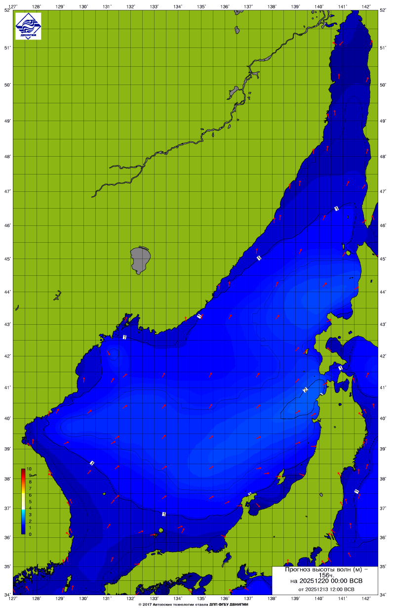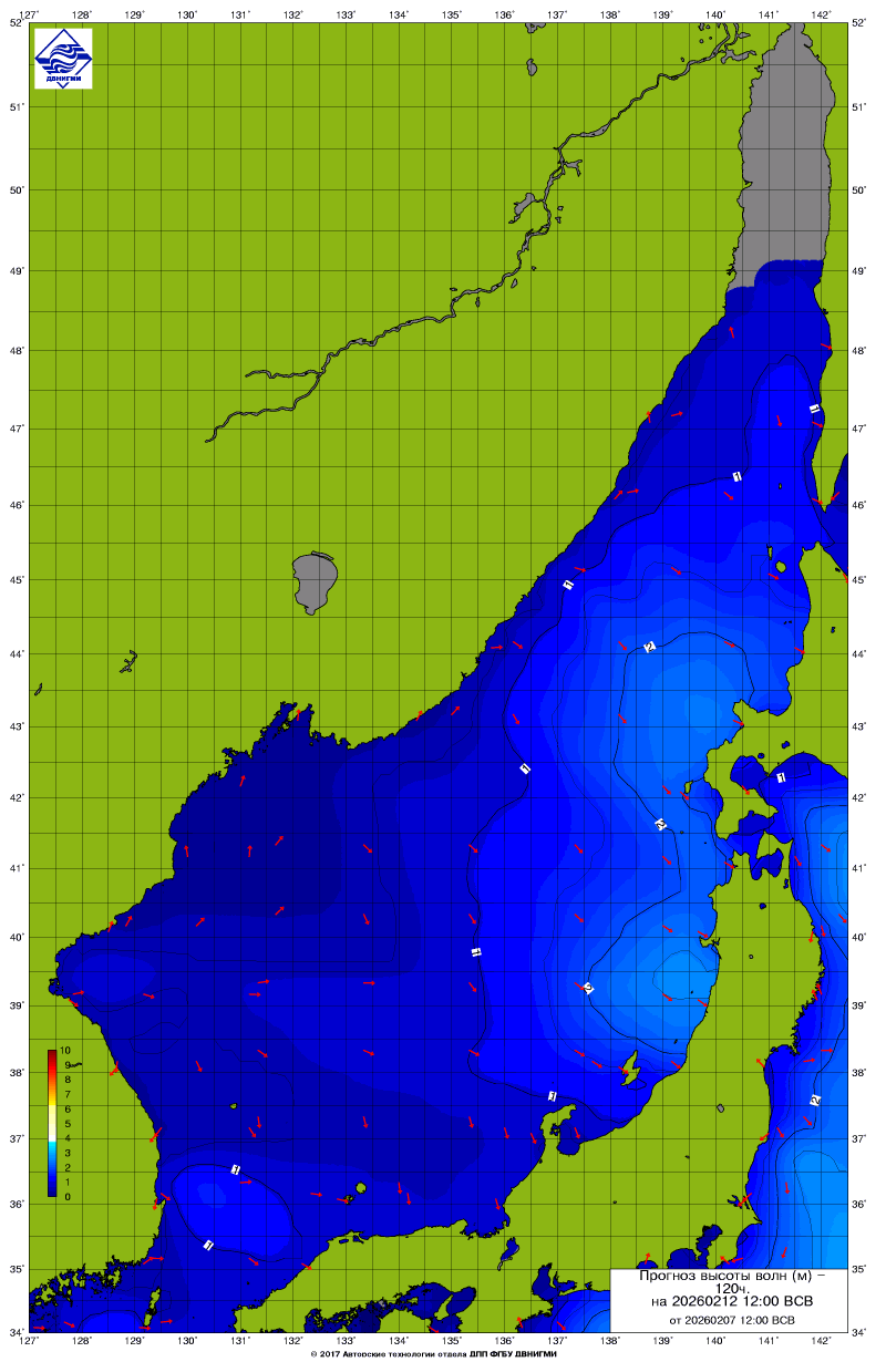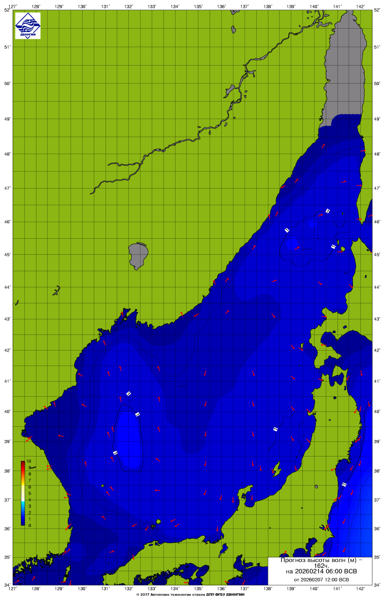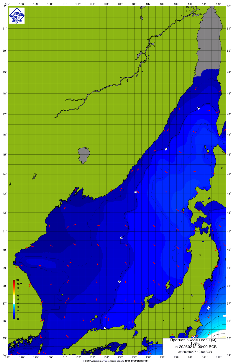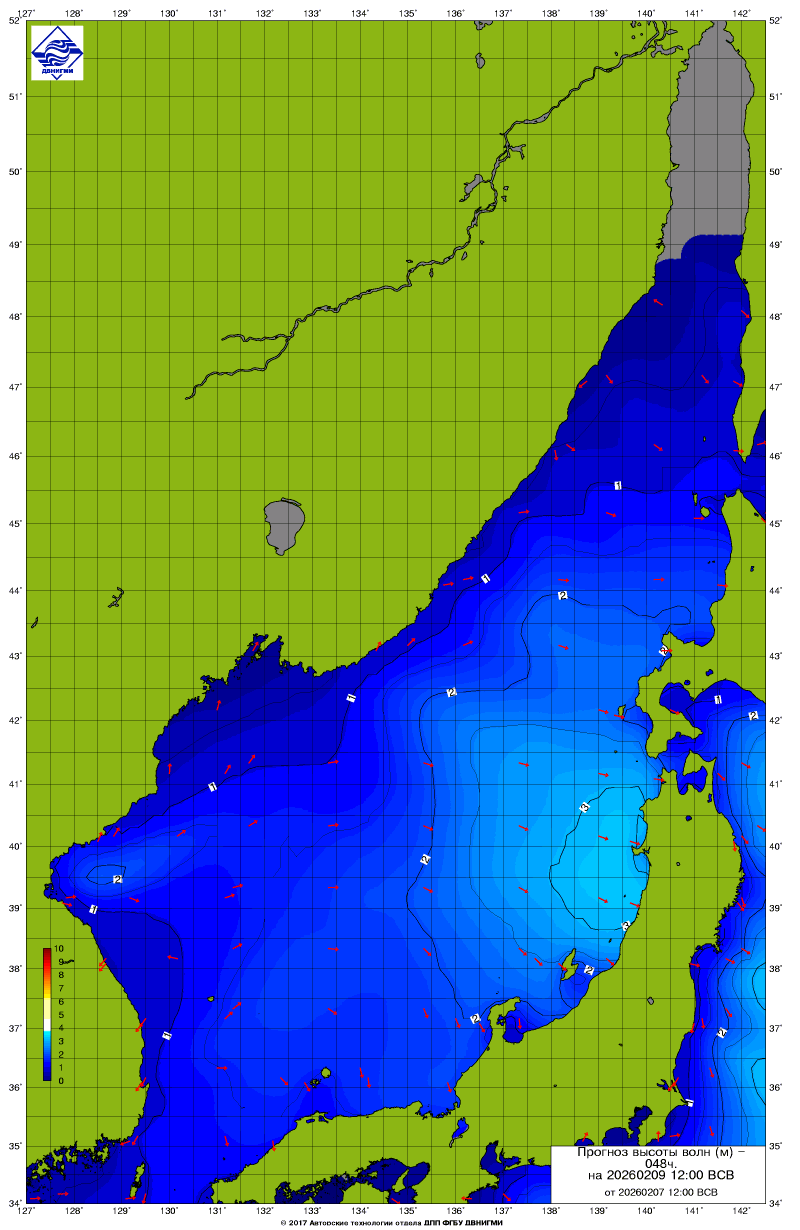 Прогноз на основе численной модели WW III является результатом научных исследований, проводящихся в ФГБУ "ДВНИГМИ".
