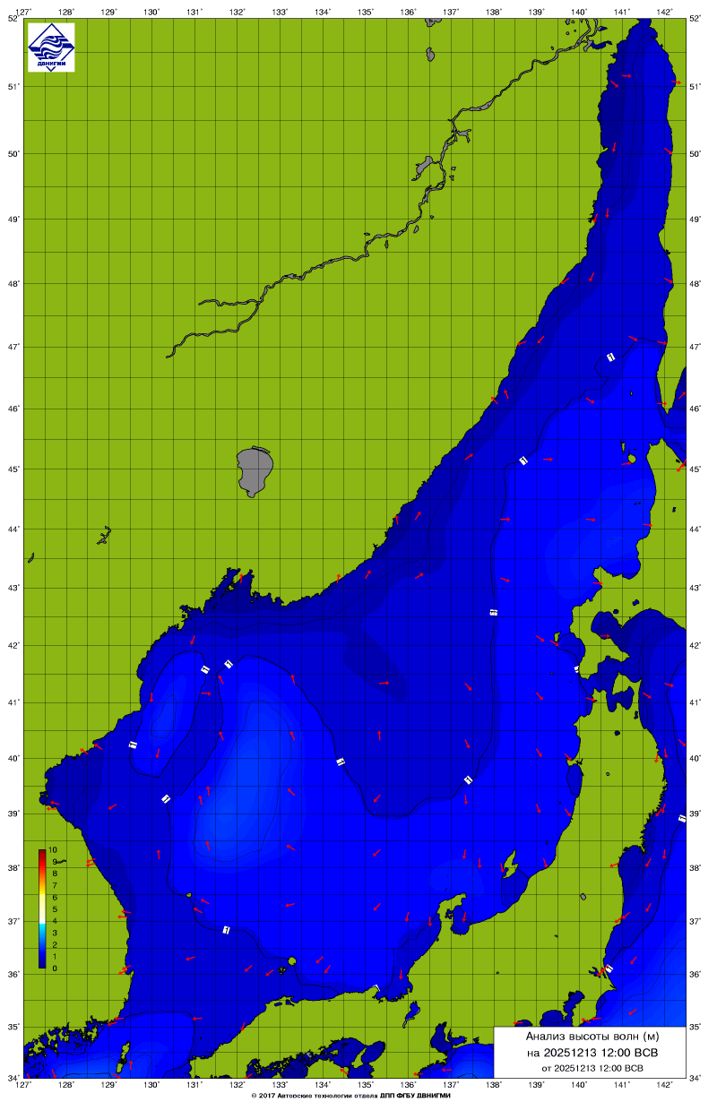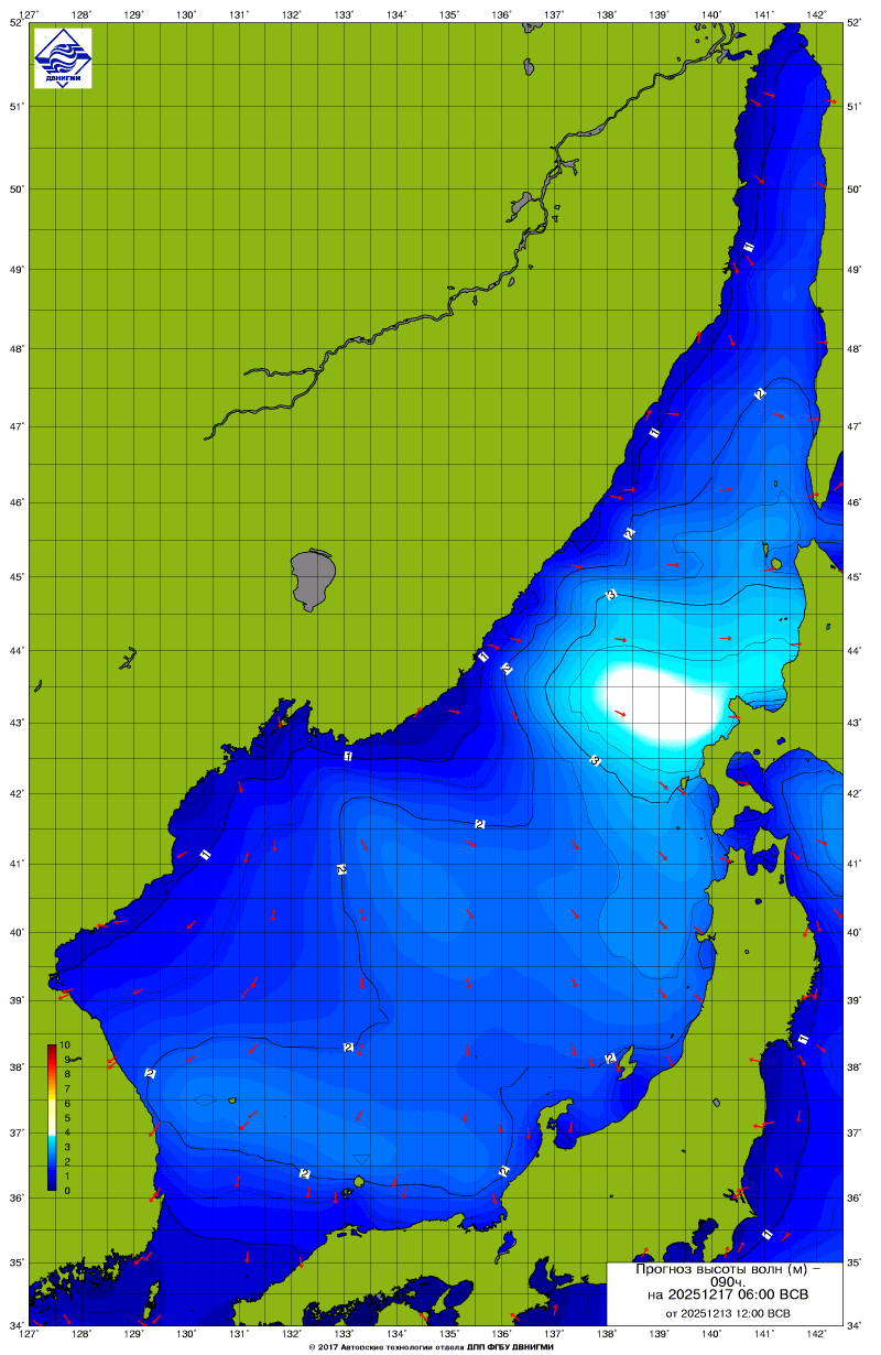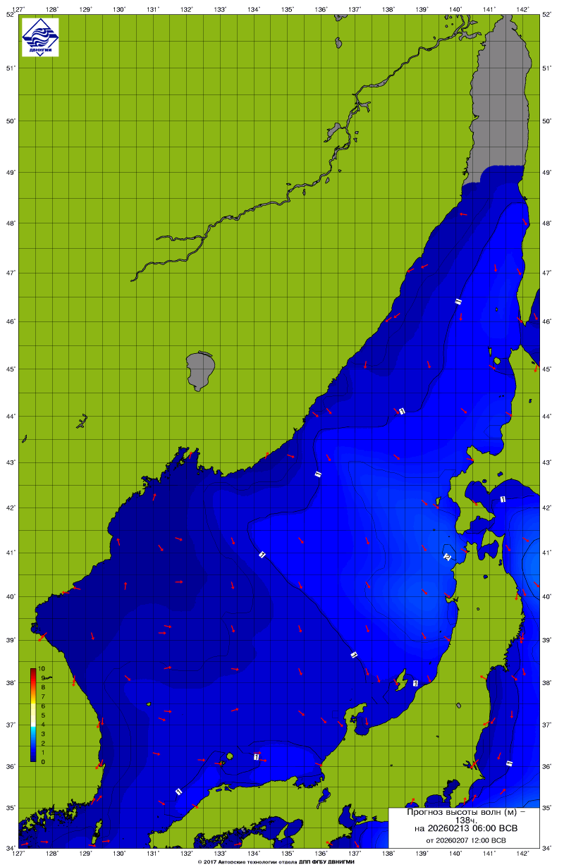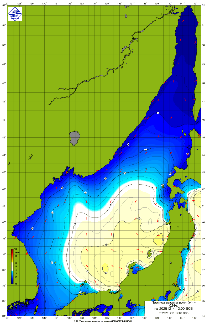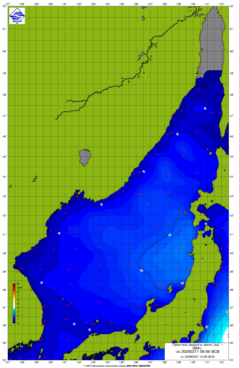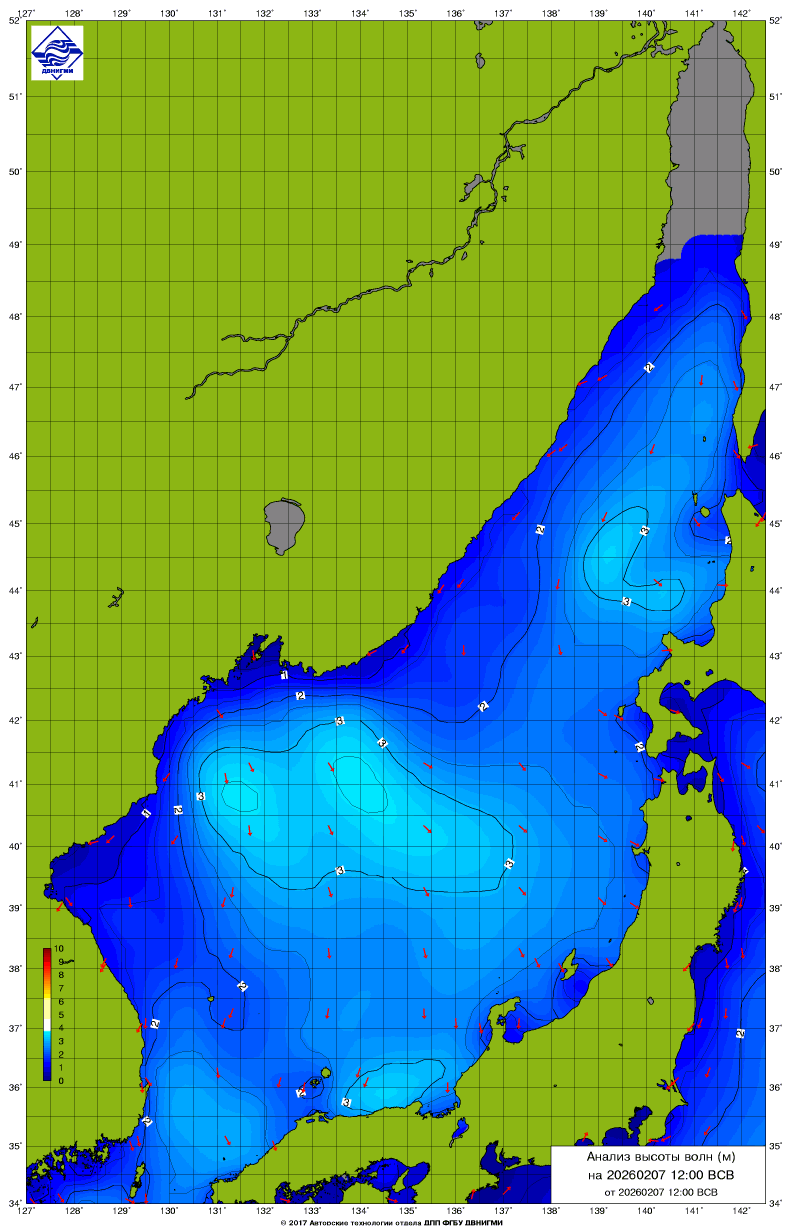 Прогноз на основе численной модели WW III является результатом научных исследований, проводящихся в ФГБУ "ДВНИГМИ".