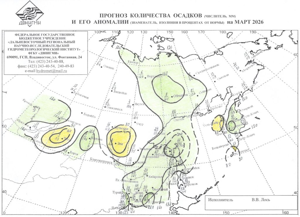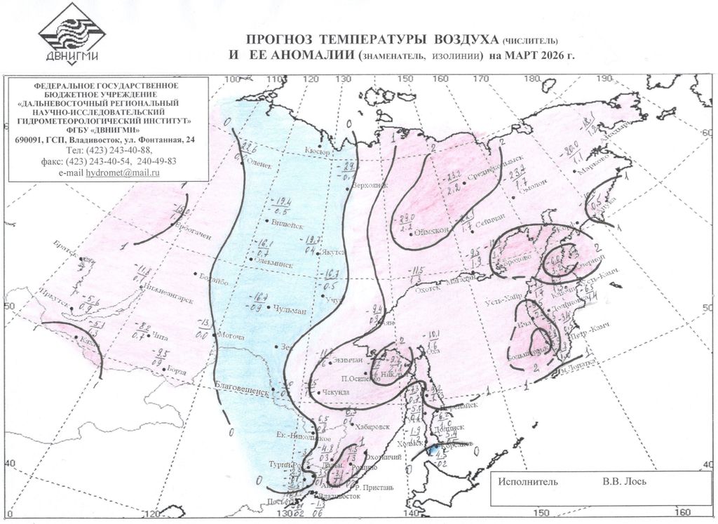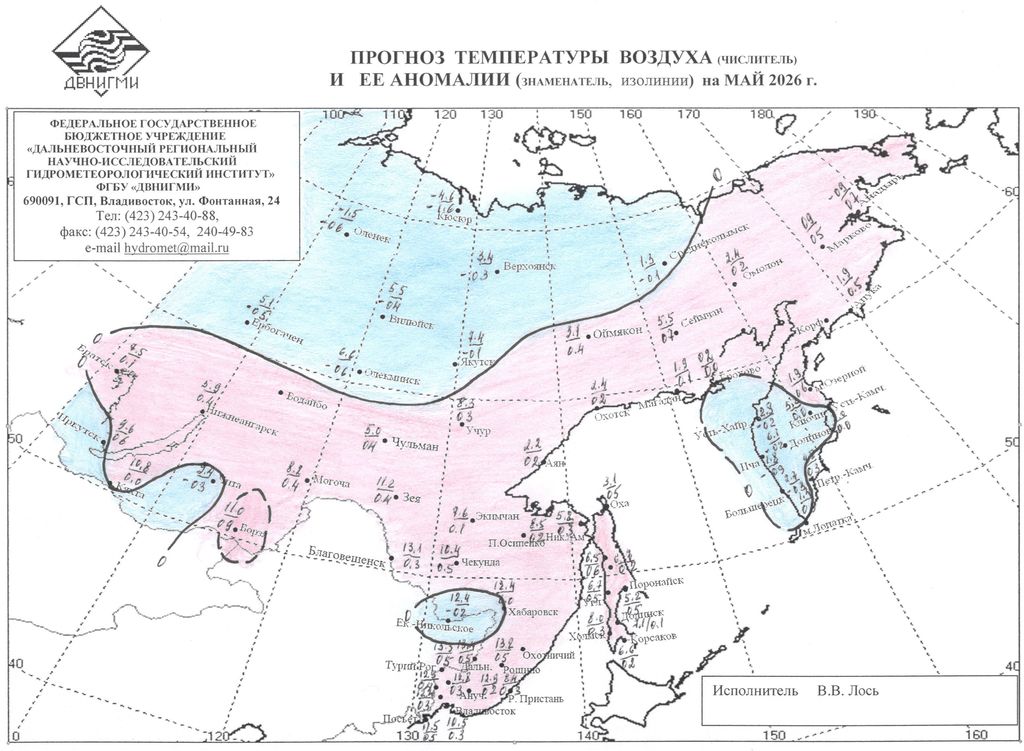 В отделе долгосрочных прогнозов погоды и изучения климата ДВНИГМИ под руководством Свинухова Г.В. был разработан метод прогноза аномалии температуры воздуха и осадков с 5 - месячной заблаговременностью для 70-ти станций Восточной Сибири и Дальнего Востока. В декабре 1973 г. данный метод был утвержден Центральной методической комиссией и рекомендован к использованию в оперативной практике в качестве консультативного. С января 1974 г. и по настоящее время прогностические карты аномалии средней месячной температуры воздуха (ΔΤ) и сумм осадков (ΔR) регулярно составляются и рассылаются для использования во все управления гидрометслужбы на территории Восточной Сибири (ВС) и Дальнего Востока (ДВ).